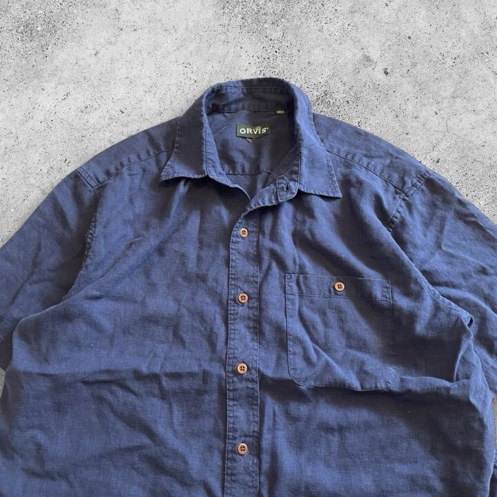 Orvis tencel hemp オービス ネイビー テンセル 麻 半袖シャツ