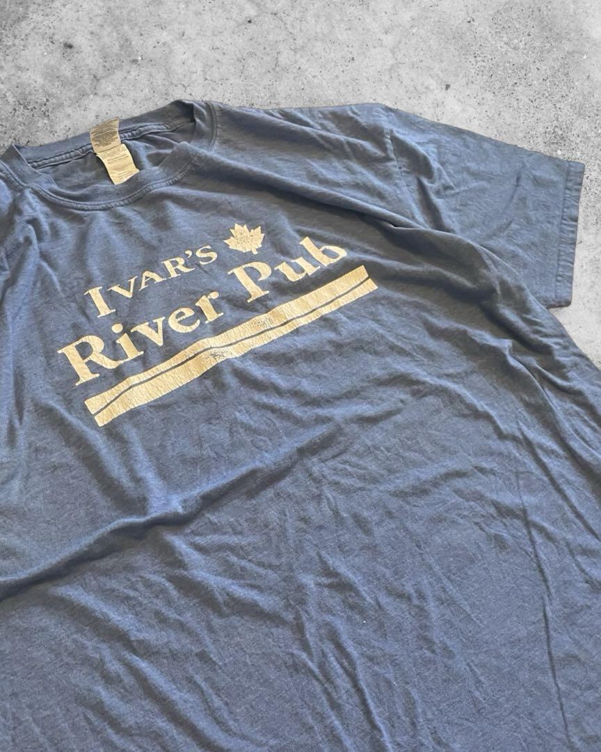 Ivar's River Pub と書かれており、レストランなどのスーベニアTシャツなのでしょうか。もしくはスタッフTなのでしょうか。企業ロゴやスーベニア系は何枚持っていたもいいですよね!
