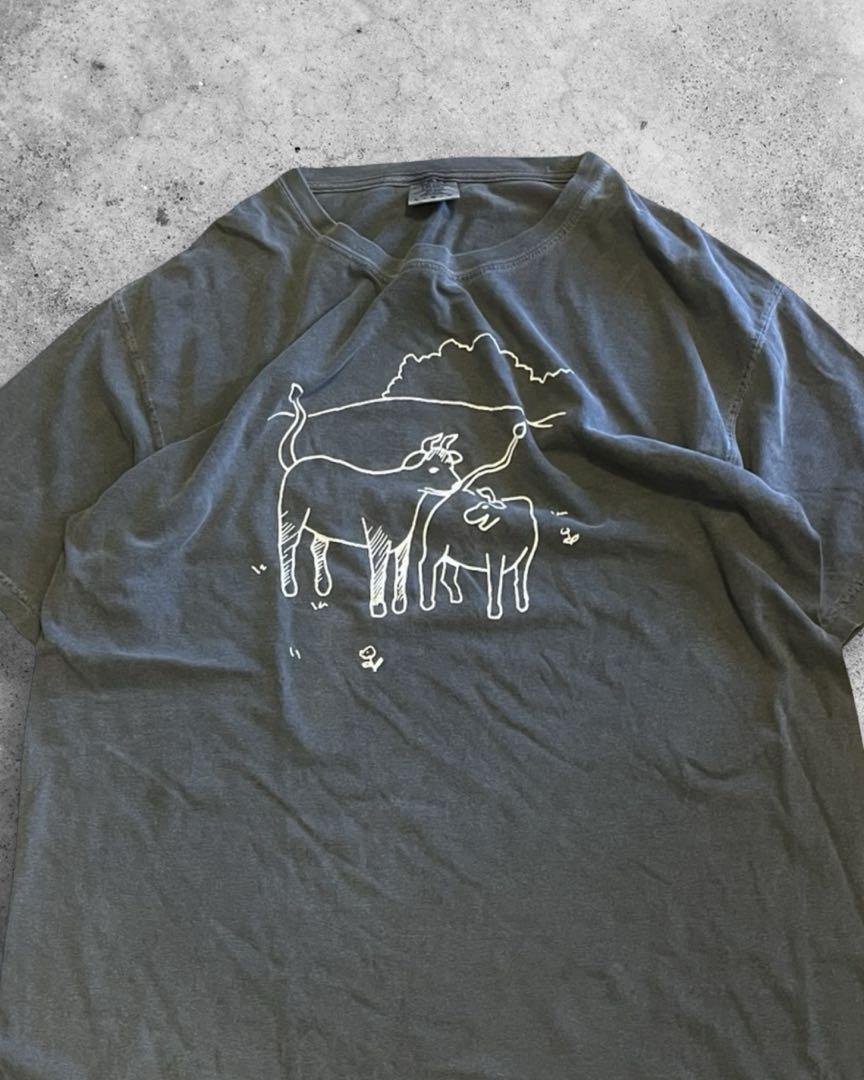 ◆ブランド(商品名): COMFORT COLORS short sleeve print T-shirt / コンフォートカラーズ プリント Tシャツ 後染め ブラック グレー 牛 イラスト