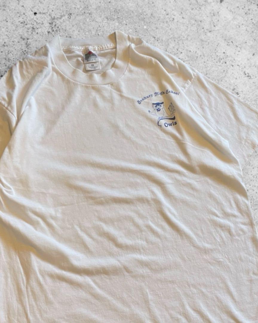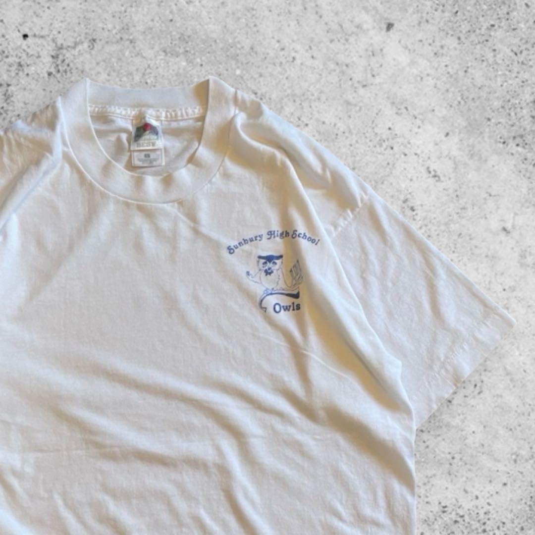 Sunbury High School Owls とプリントされており、一風変わったカレッジTになっております。サンベリー高校は、アメリカ・ノースカロライナ州ゲイツ郡サンベリーにある歴史ある高校複合施設だそうです。