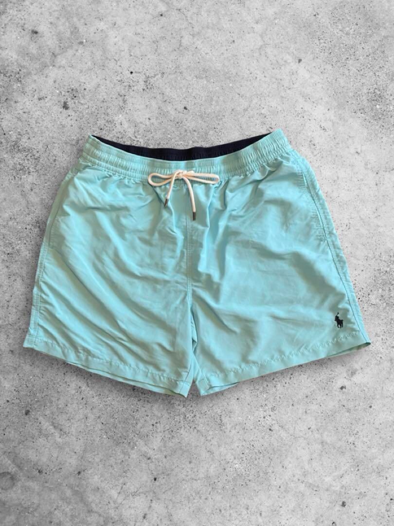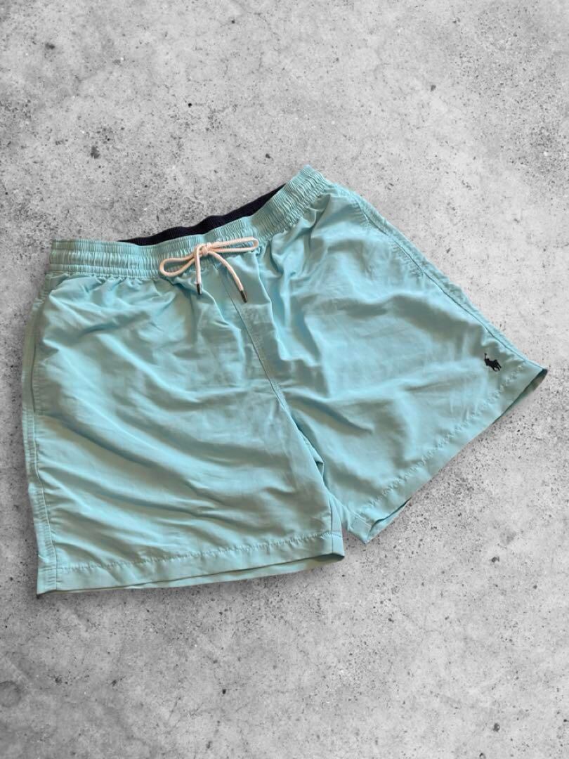 Polo by Ralph Laurenの定番ショートパンツといえばコットンのチノショーツですが、ナイロンのスイムショーツもいいですよね!ライトブルーにネイビーの刺繍が映えてとても良い感じです。