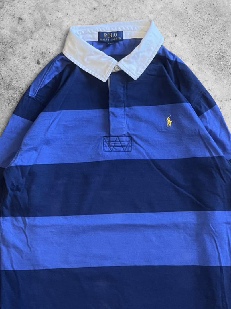 Polo Ralph Lauren ラガーシャツ 青系 ワイドボーダー 長袖