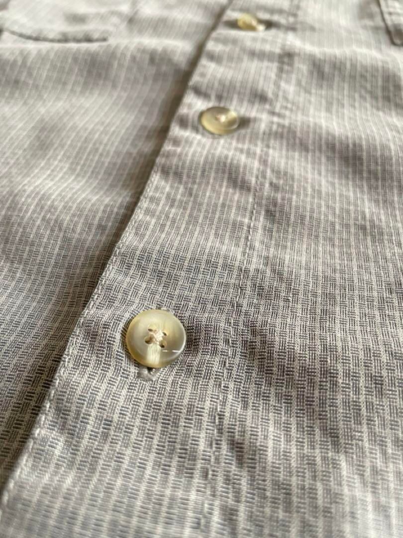 素材は65%が人工レーヨンとも呼ばれるビスコース、35%ポリエステルのため肌さわりと速乾性が両立していてとても良い感じです。何よりグレーベースのチェックが何にでも合わせやすくカジュアルな中に上品さも兼ね備えておりおススメです。
