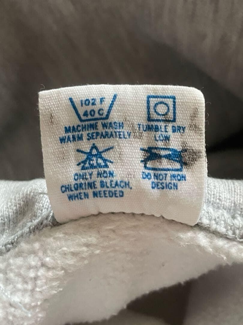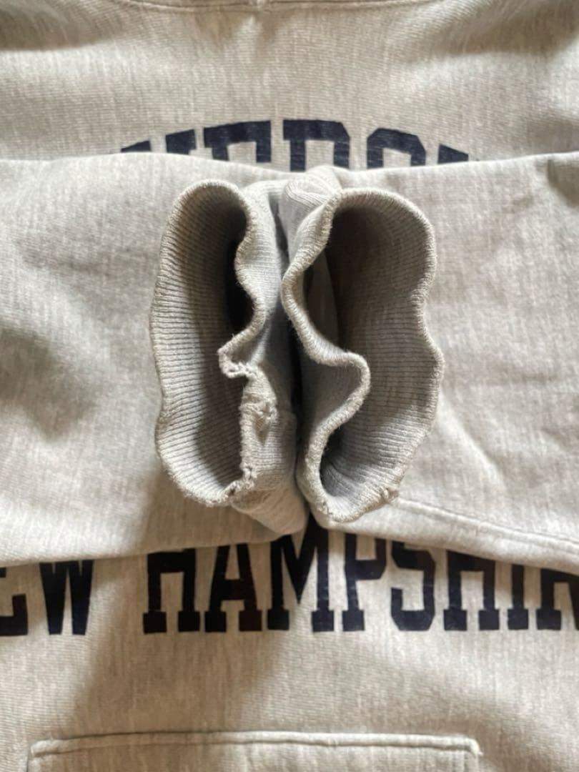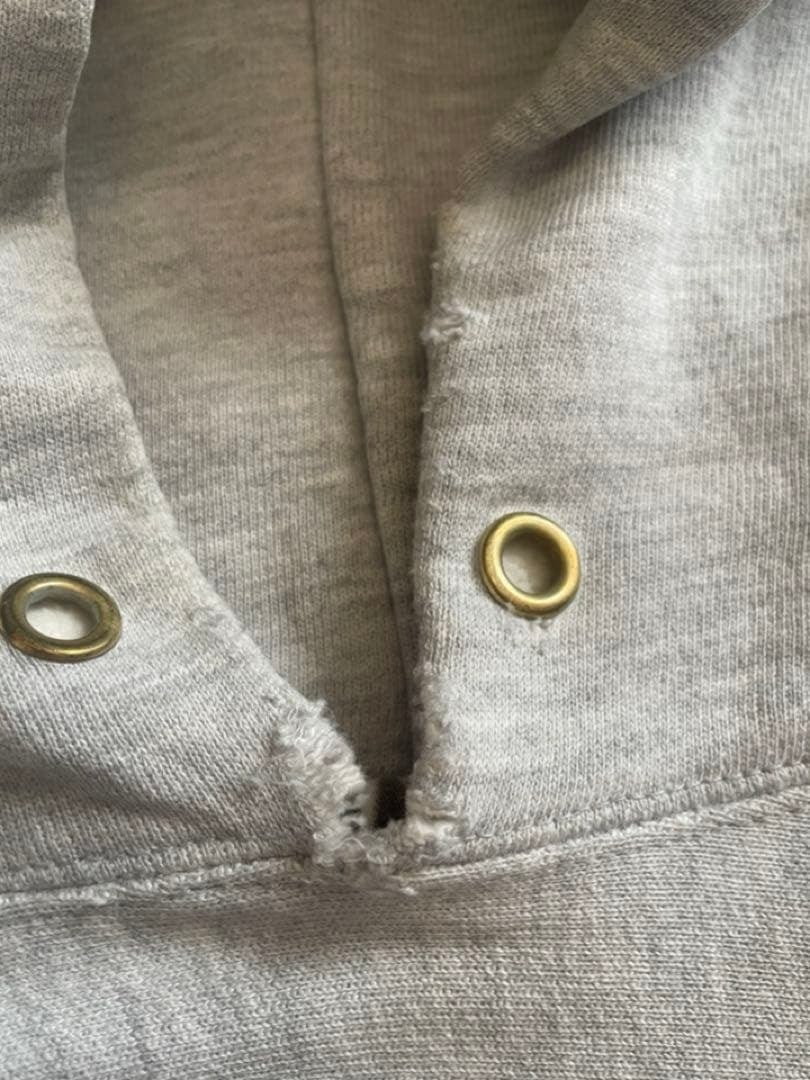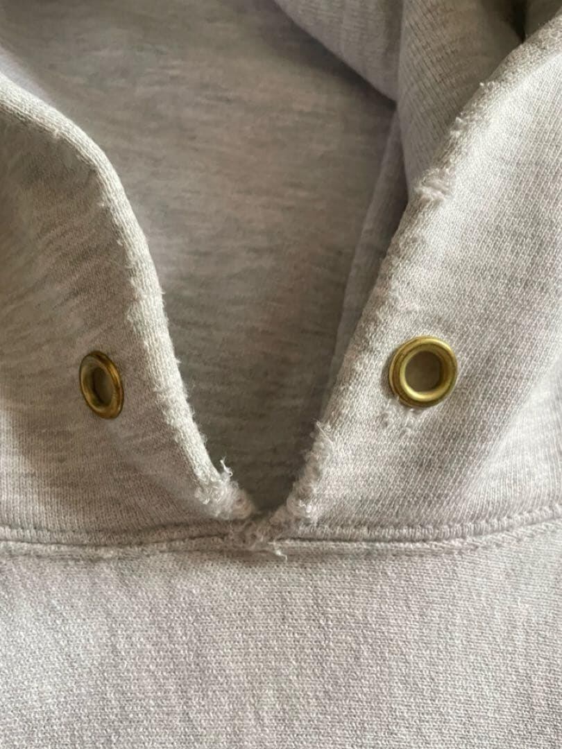 フード裏と右袖リブ部分にオレンジ色の汚れがあります。また所々経年によるホツレなどがございますが着用には問題ございません。状態は比較的良い古着のリバースウィーブとご認識ください。