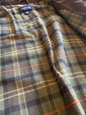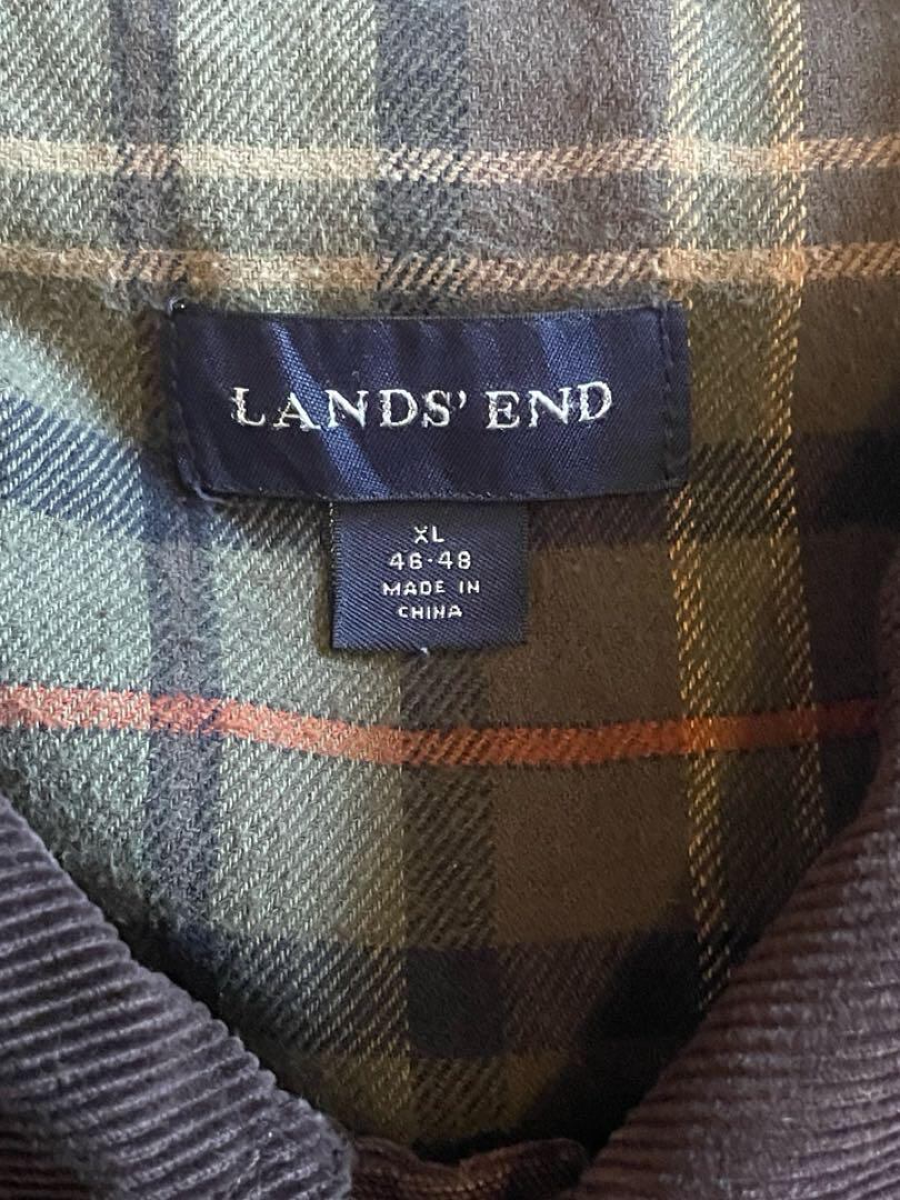 襟はコーデュロイになっており、裏地はチェックのフランネル生地になっています。XL表記ですが袖はそこまで長くありません。丈は長めになっています。