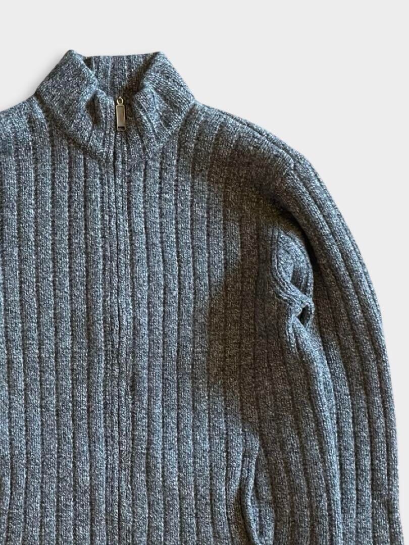 ◆ブランド(商品名): 90s LANDS'END fullzip standcolor gray / 90年代製 ランズエンド スタンドカラー フルジップ ニット グレー