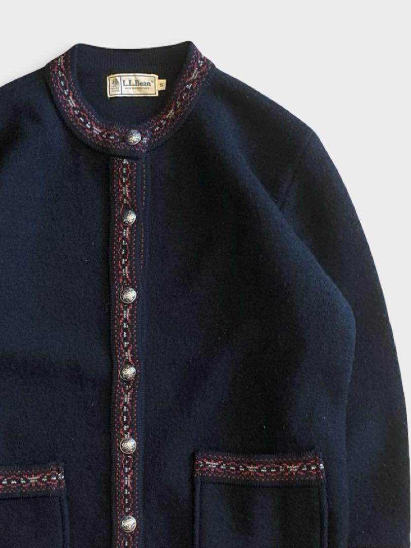 エルエルビーンのチロリアンボタンカーディガンです。この手のカーディガンは一般的に、ボディ部分もノルディック柄の派手なものが多いですが、こちらはブラックで至ってシンプルなデザインです!正直私物に使用かと思っているとてもオススメな商品です。