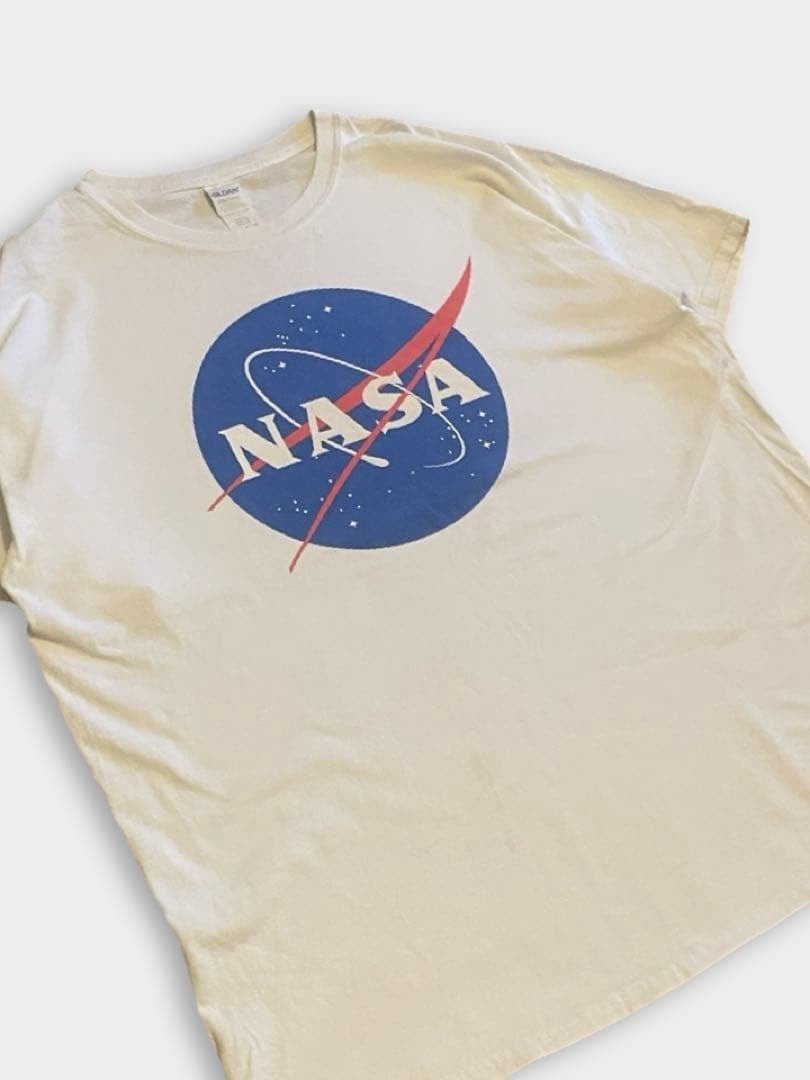 NASAことアメリカ航空宇宙局のロゴTシャツです。アポロ計画における人類初の月面着陸、スカイラブ計画における長期宇宙滞在、さらに宇宙往還機スペースシャトルなどを実現させてきました。GILDAN ボディのXLサイズは正直 ゴールデンサイズ です。NASAロゴが大きめなのもポイント高いですね。