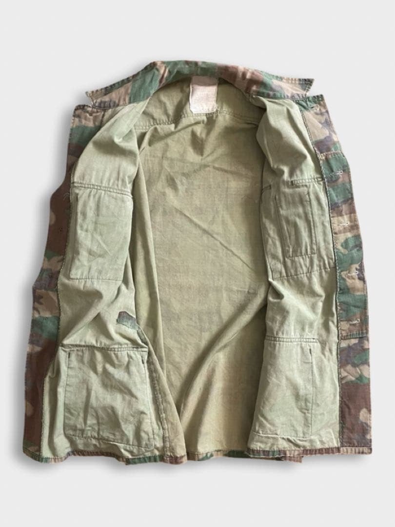 タグが消えておりますが、米軍支給品だと思われます。フロントポケットのUSMCステンシルがしっかり残っており、ミリタリー古着として高い人気を誇る一着です。リアルな使用感が良い雰囲気に仕上がっており、カモ柄のフェード感がスタイリングの主役になります。コットンリップストップ生地で軽量ながらタフな作りなので、普段使いからアウトドアまで幅広く着用可能です。