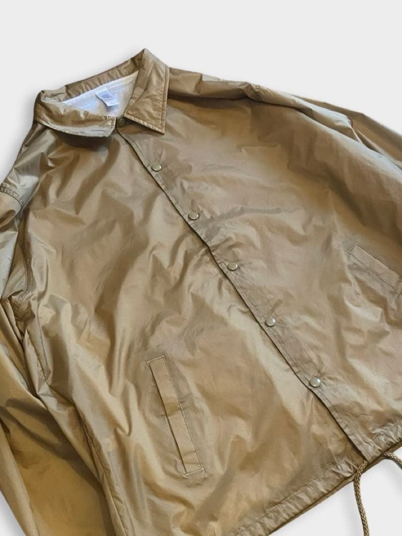 ユナイテッドスポーツヘッドラインのコーチジャケットです。色はベージュになります。無地のため何にでも合わせやすそうです!春や秋にとても良い爽やかなアースカラーですね!!ランズエンドなどとほぼ同じシルエットながら安価に入手できるのも良い点ですね。