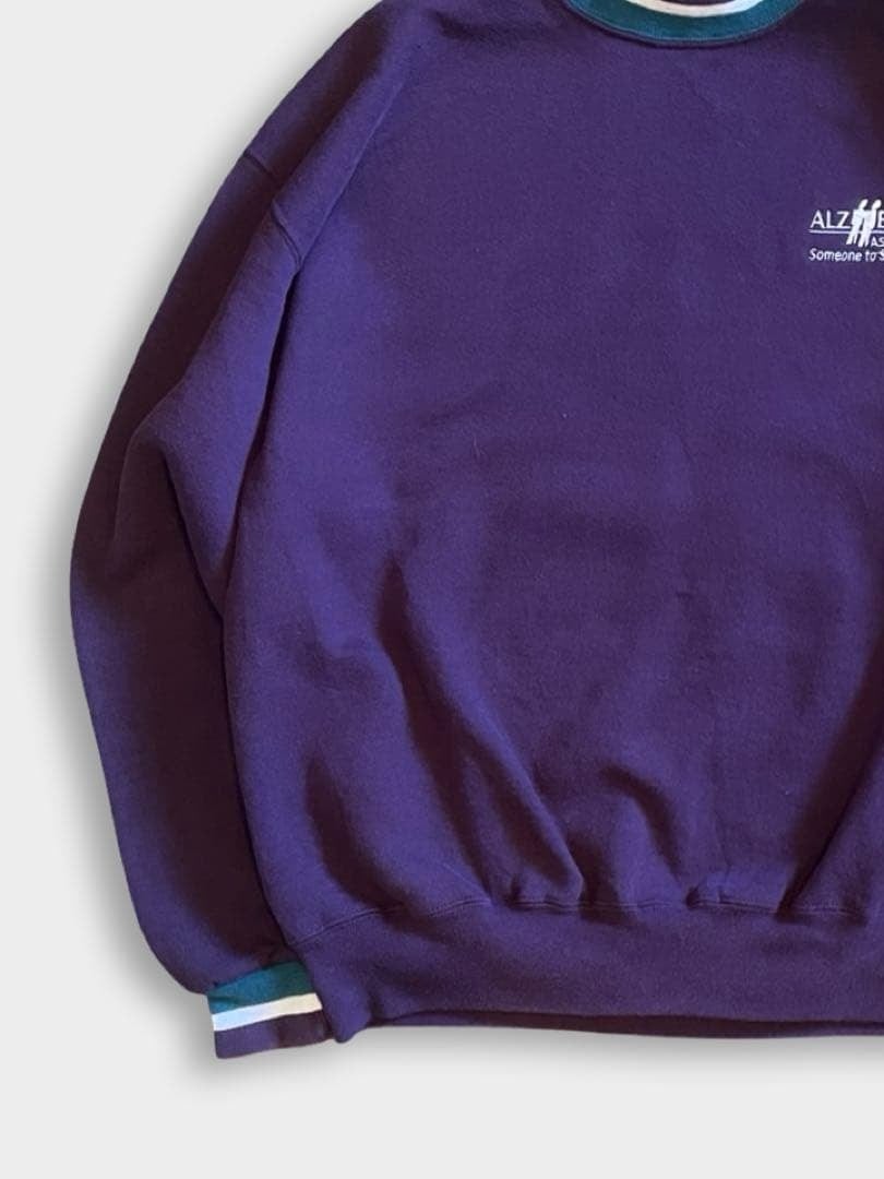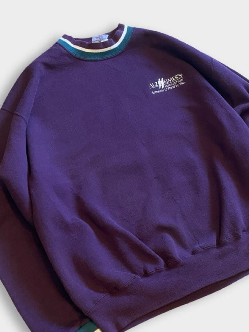 ◆ブランド(商品名): 90s JERZEES sweat libline Alzheimer Association / 90年代製 ジャージーズ パープル スウェット リブライン 米アルツハイマー協会 ロゴ入り