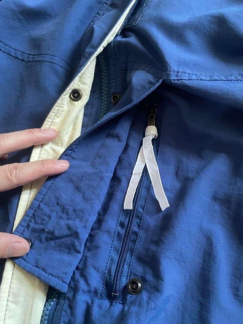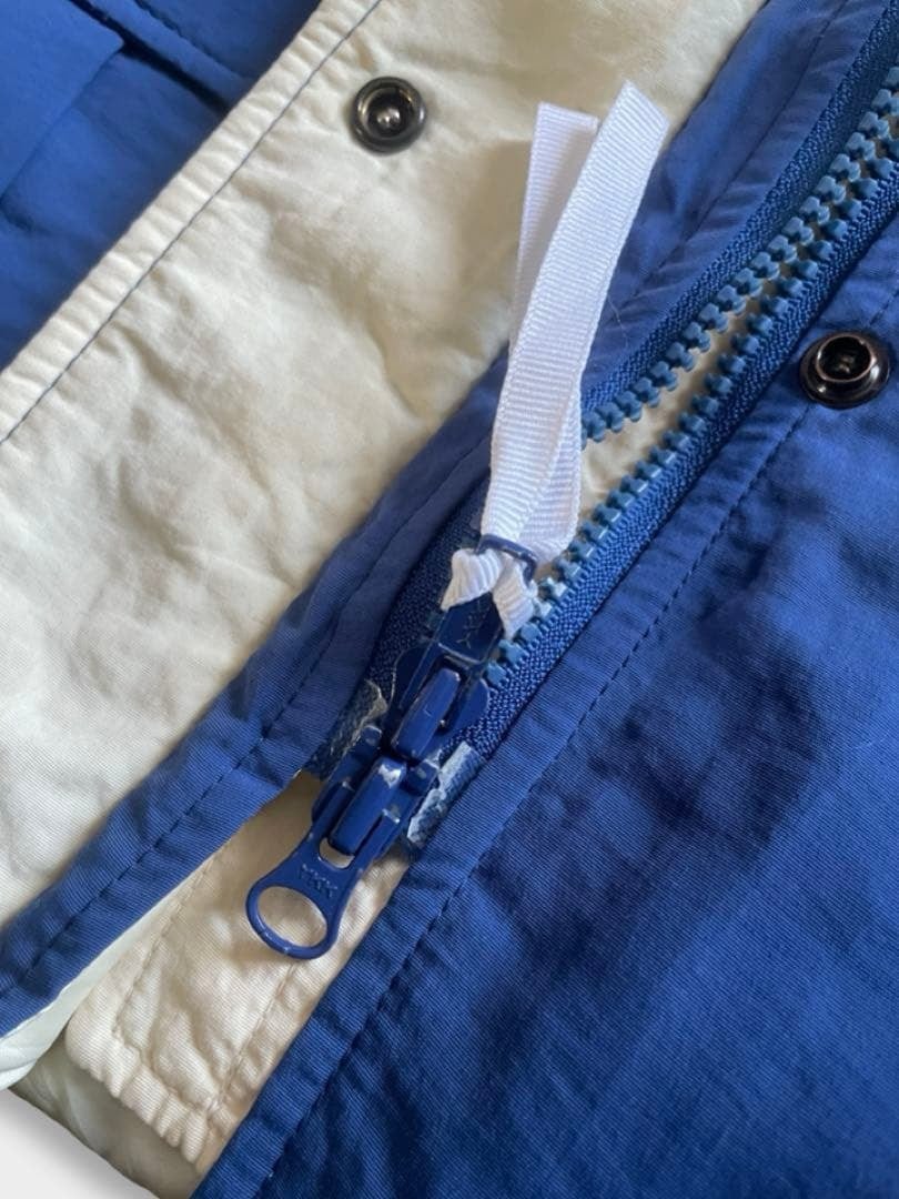 ウィメンズのマウンテンパーカーですが、珍しいモデルで、ブルーとホワイトのバランスがとても秀逸です。グッドデザインな1着になります。?