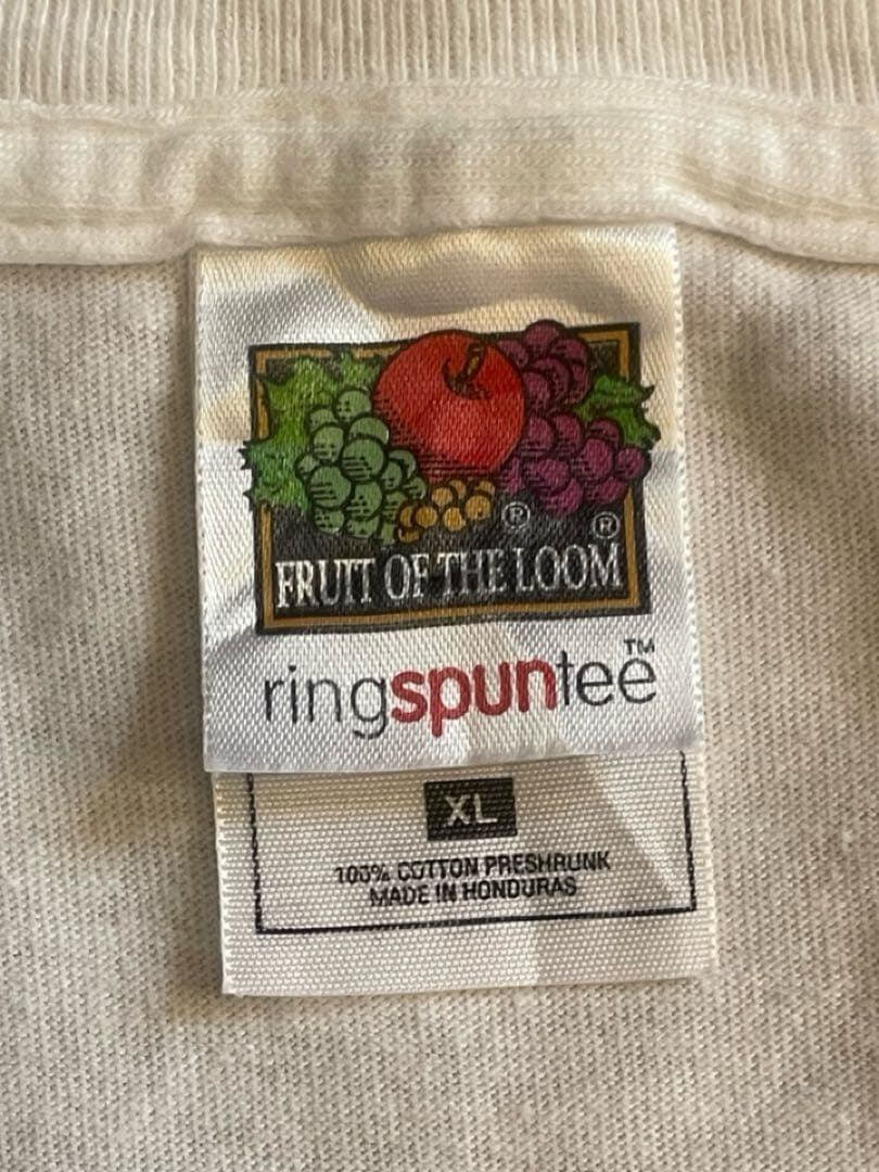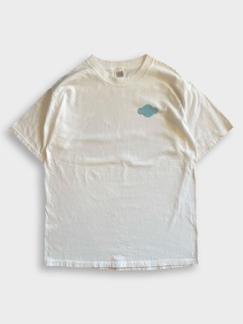 90sのフルーツオブザルームボディにプリントが施された企業Tシャツです!