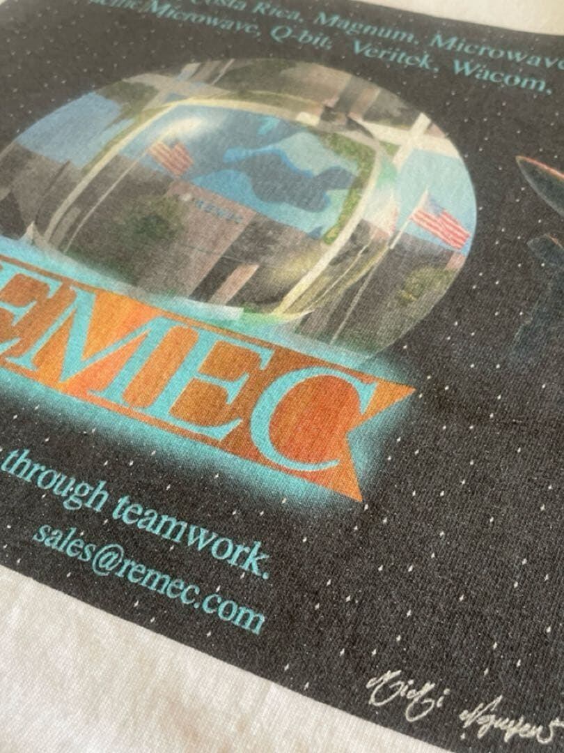 ◆ブランド(商品名): 90s FRUIT OF THE LOOM REMEC logo print Tshirt / 90年代製 フルーツオブザルーム レメック 企業ロゴ Tシャツ 半袖