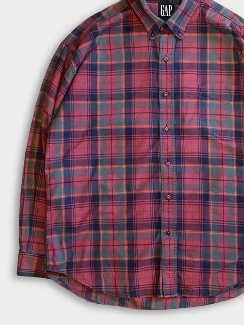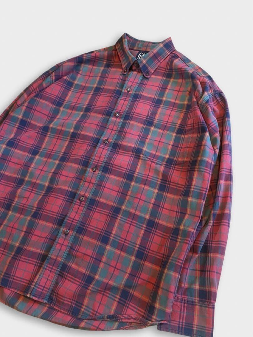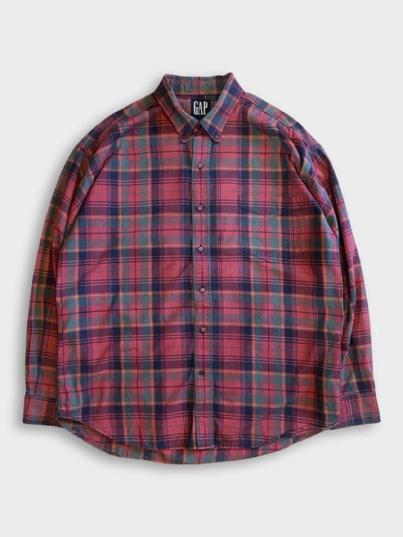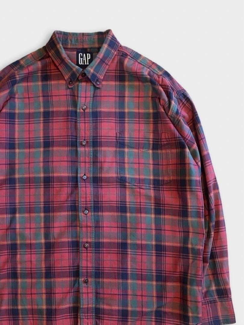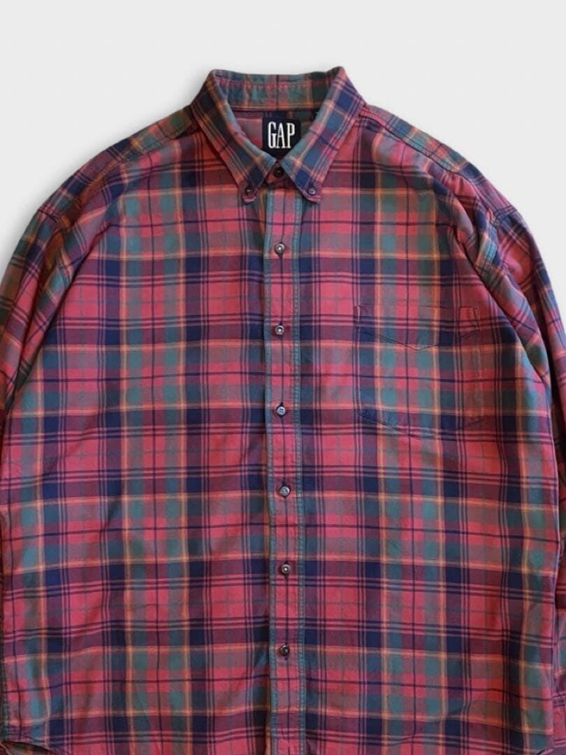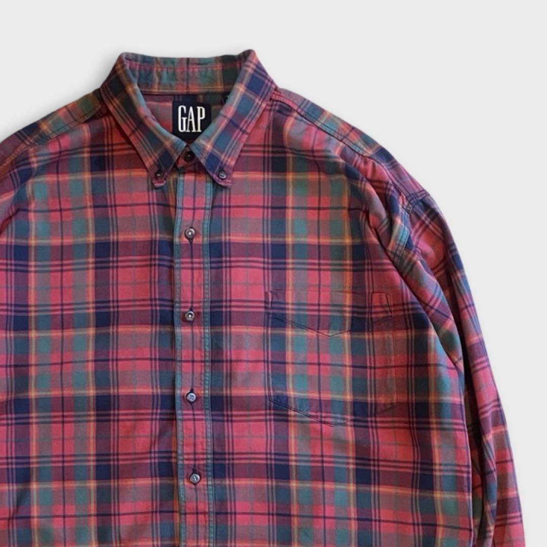 ◆ブランド(商品名): 90s OLD GAP button down check shirt / 90年代 オールドギャップ ボタンダウン チェックシャツ 長袖 赤 ネイビー 古着