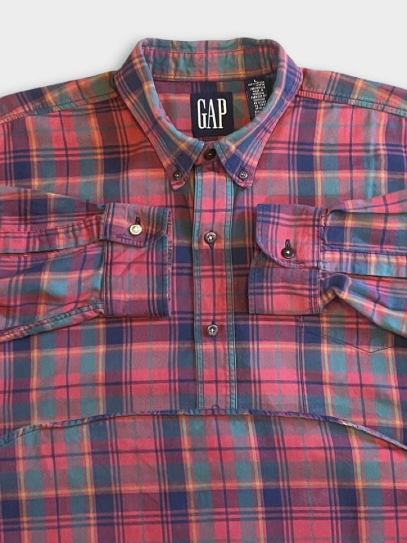 GAP(ギャップ)のボタンダウンチェックシャツです。