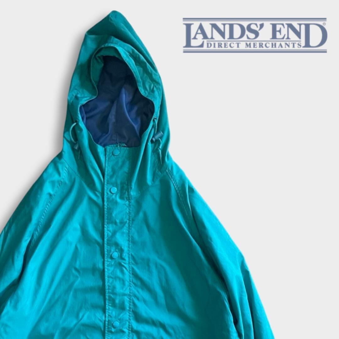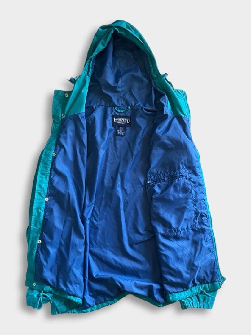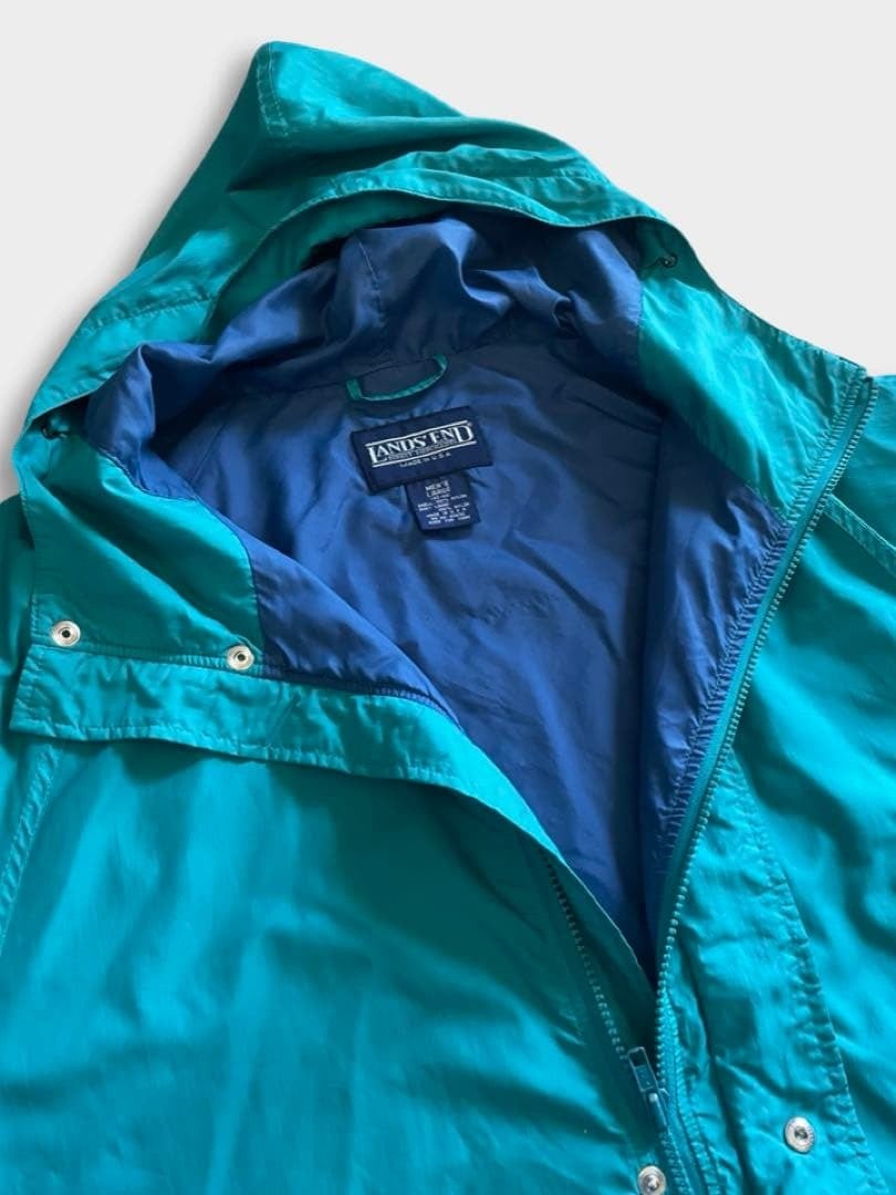 80s USA製 LANDS'END ターコイズ ナイロン フード ジャケット