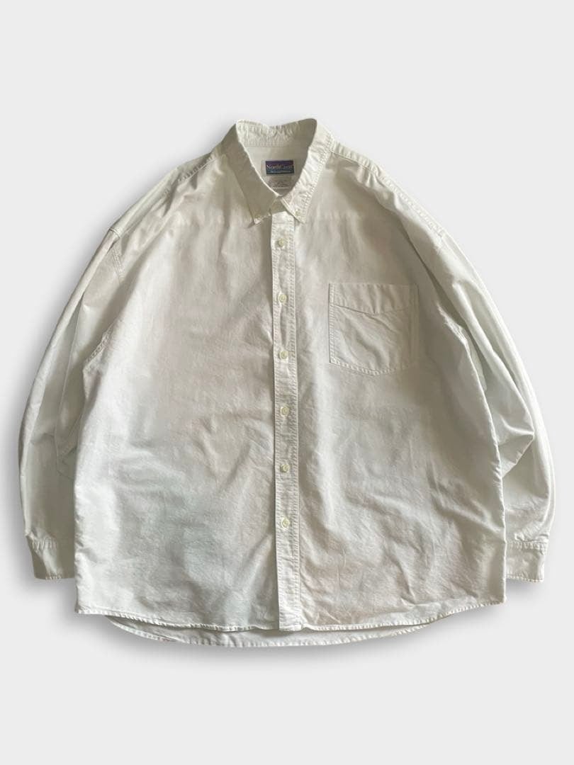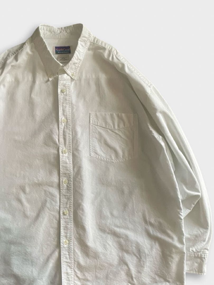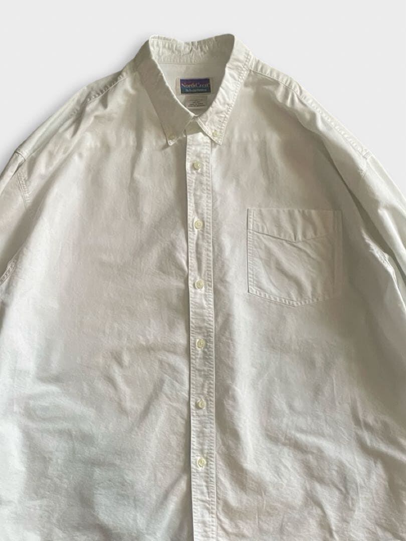 ◆ブランド(商品名): 90s North Crest long sleeve oxford shirt / 90年代製 ホワイト無地 長袖 オックスフォードシャツ