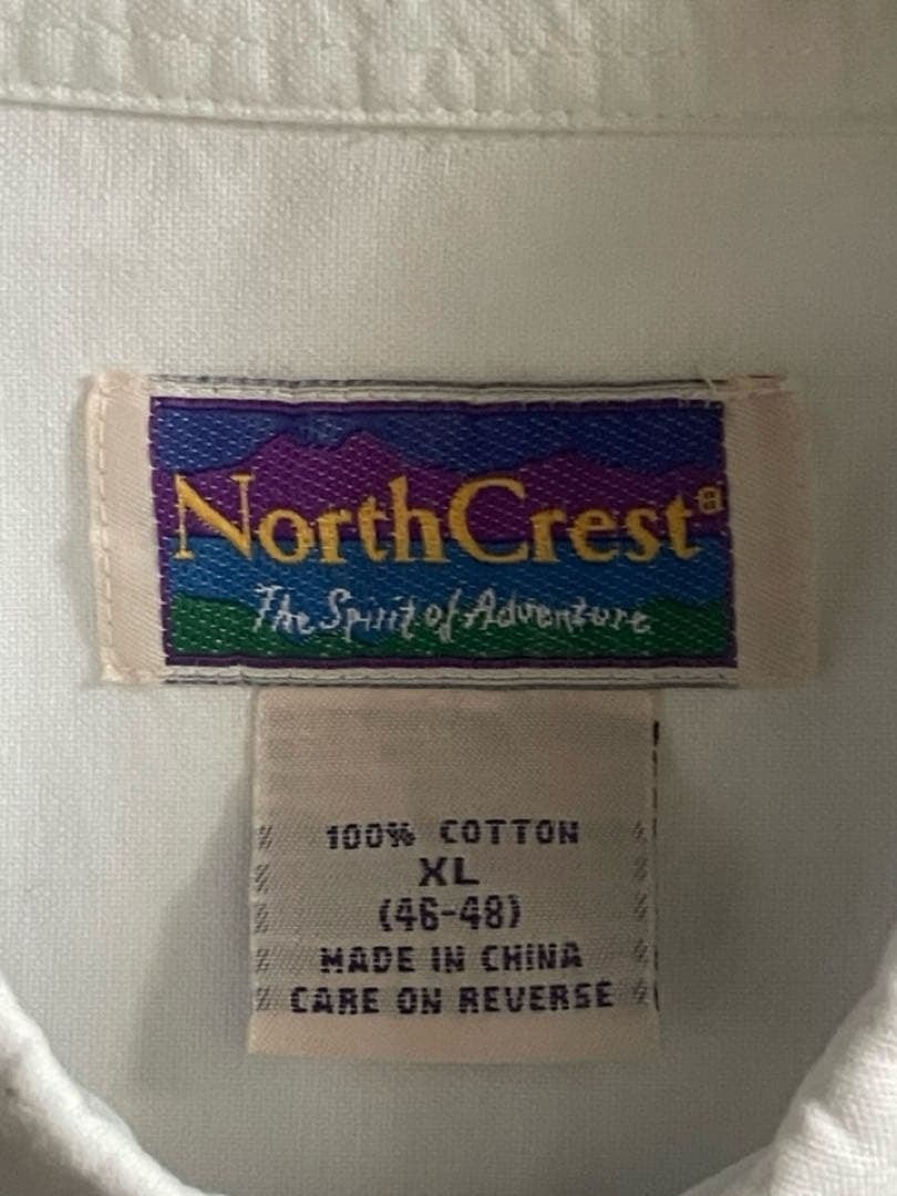 90s NorthCrestのオックスフォードシャツです。生地がしっかりしているオックスフォードシャツです。タグもすごくかわいくて好きです。