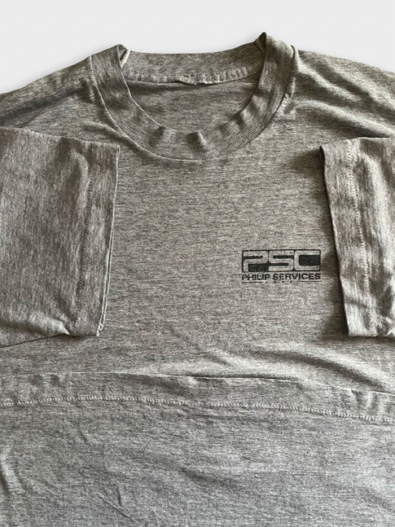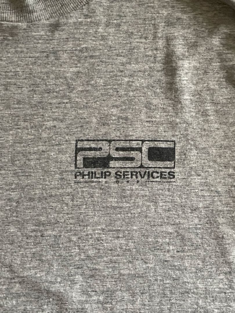 フィリップ・サービス社は、オンタリオ州ハミルトンに拠点を置くカナダのリサイクル業者でした。1997年の財務諸表において会計不正の疑いで告発され、1999年に連邦破産法第11章に基づき破産を申請した企業のようです。Tシャツのディテールとしては袖がシングルステッチで会社は90年代で倒産しているので90s以前であることは確実です。