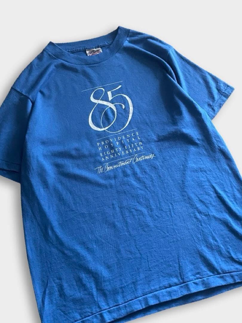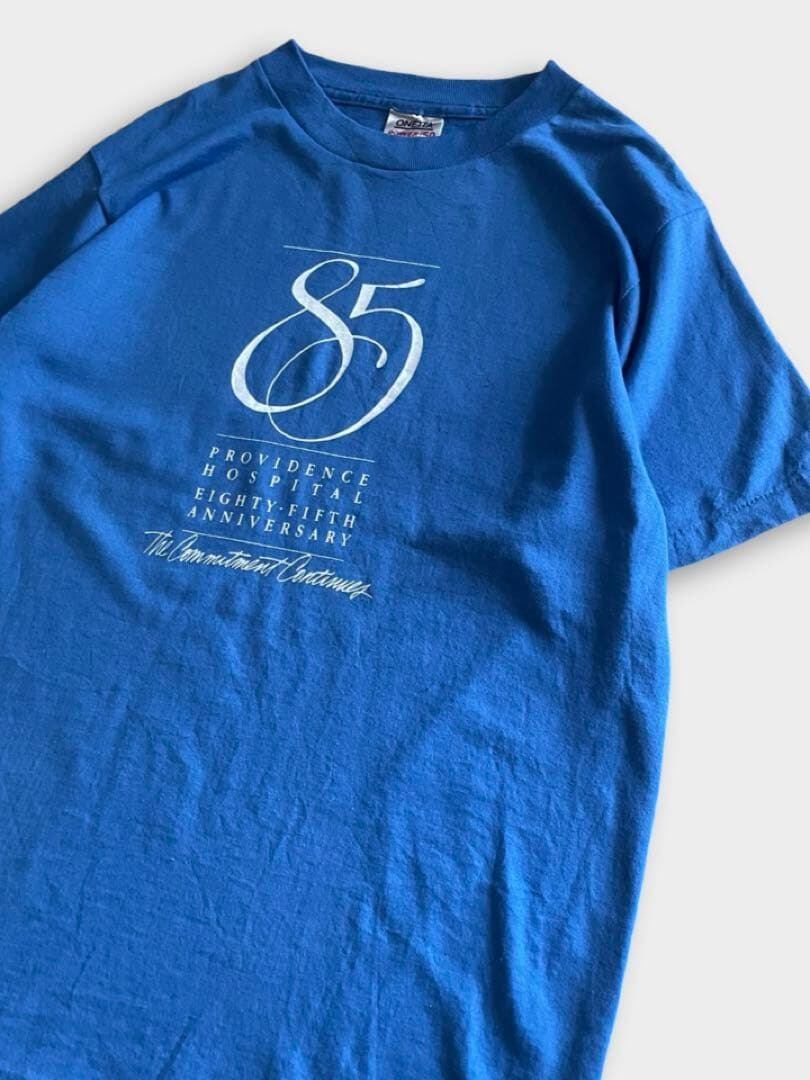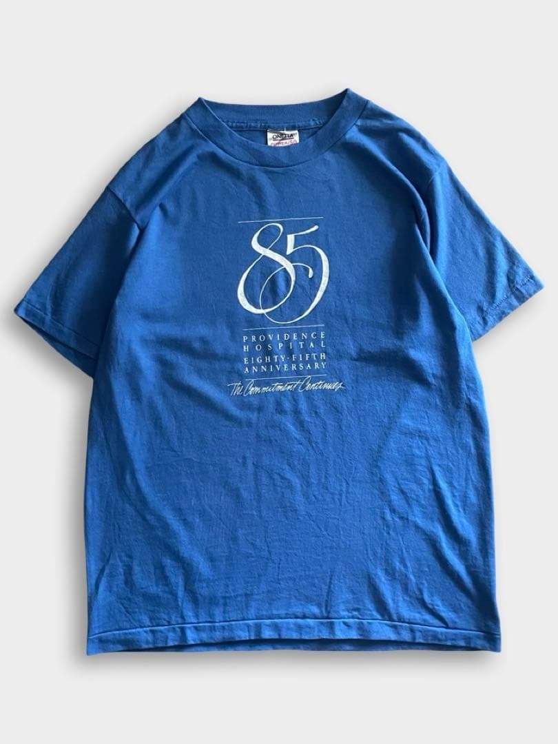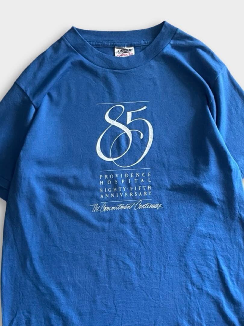 プロビデンス病院という名の病院は複数あるようですが、いずれかの病院の85周年記念のプリントTのようです。90sオニータボディでそではシングルステッチです。状態も良くおすすめできます!
