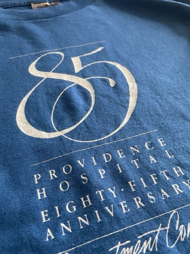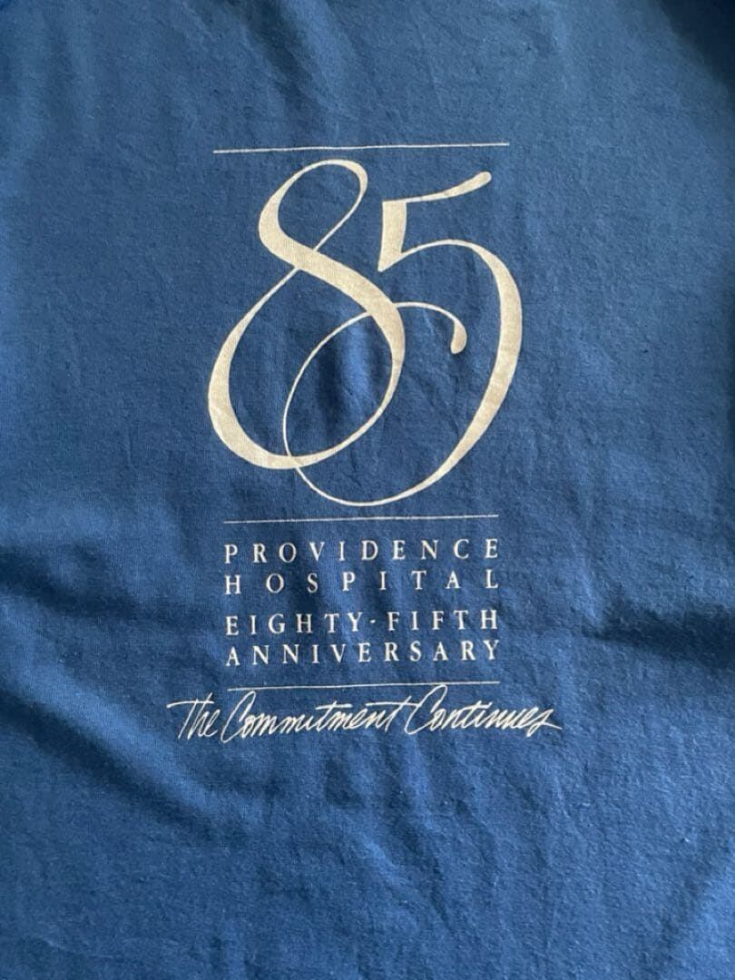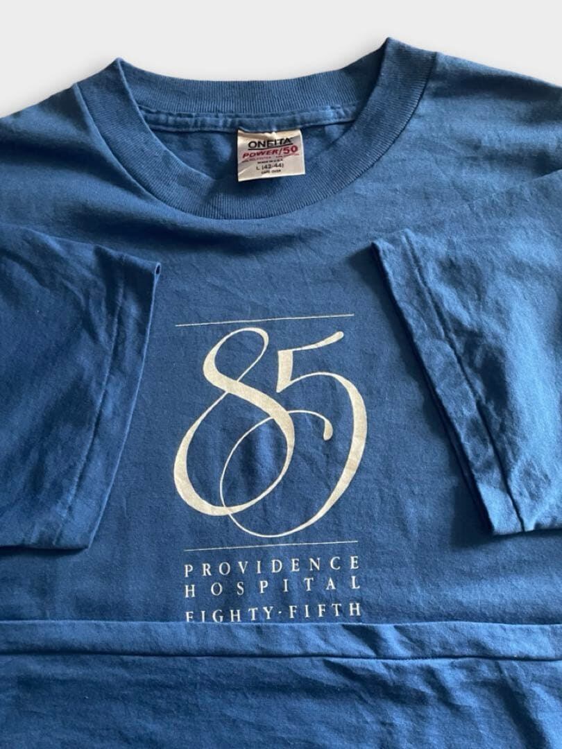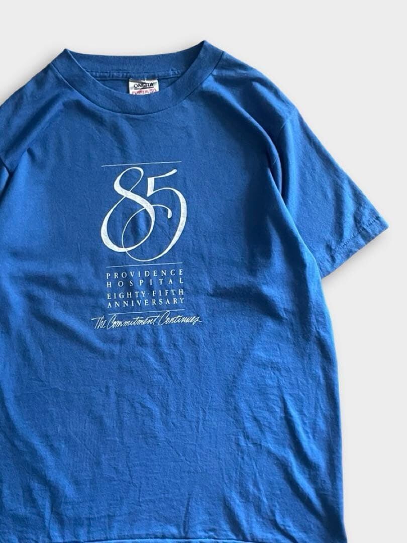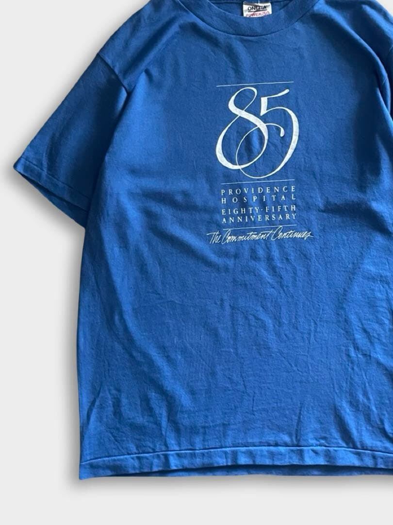 プロビデンス病院という名の病院は複数あるようですが、いずれかの病院の85周年記念のプリントTのようです。90sオニータボディでそではシングルステッチです。状態も良くおすすめできます!