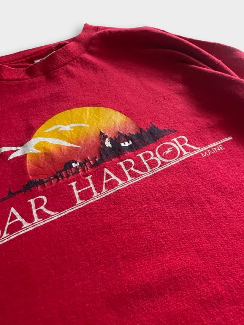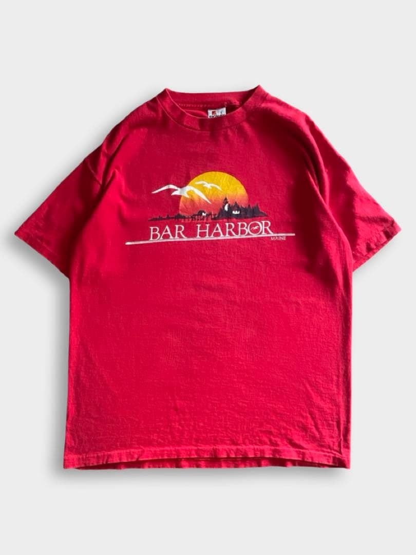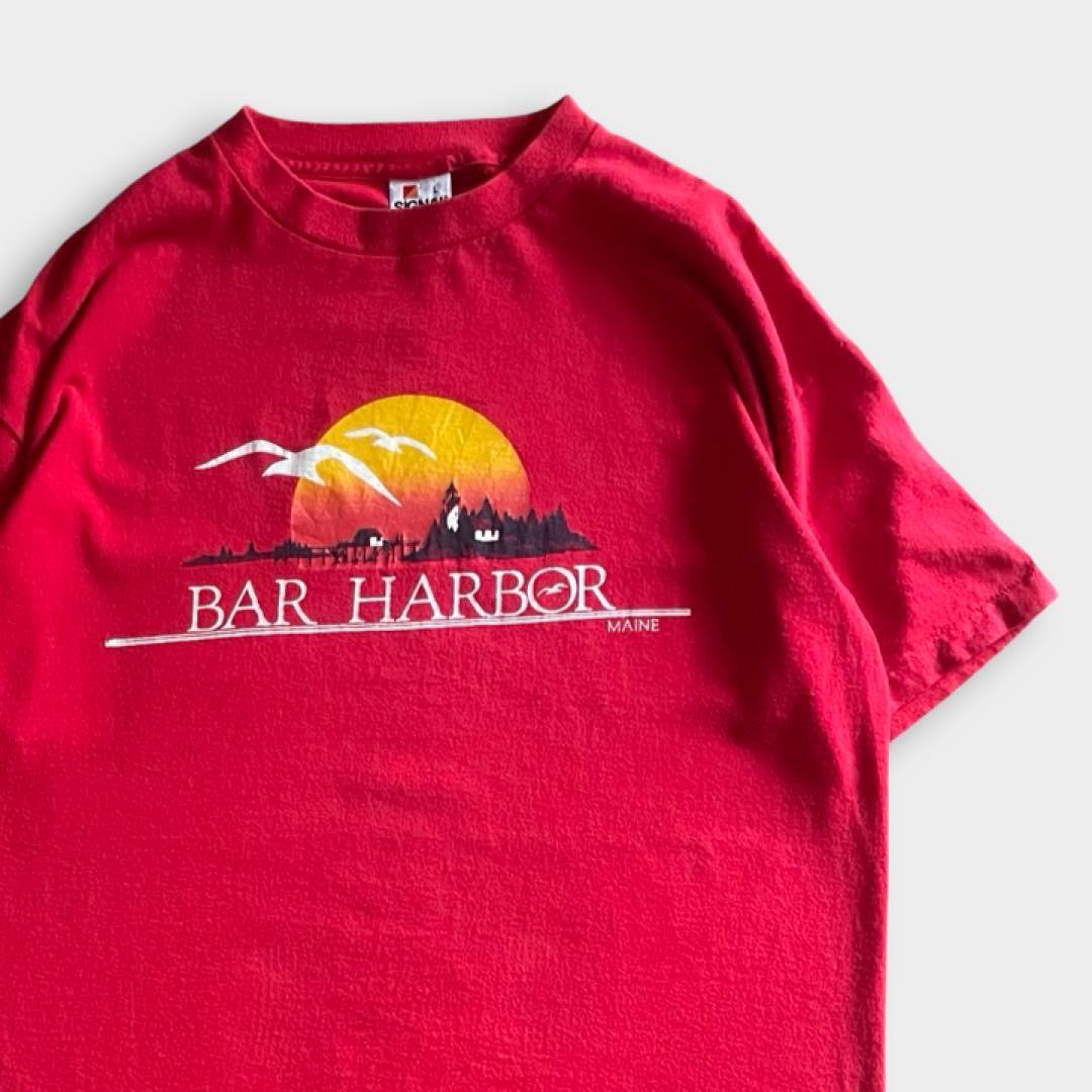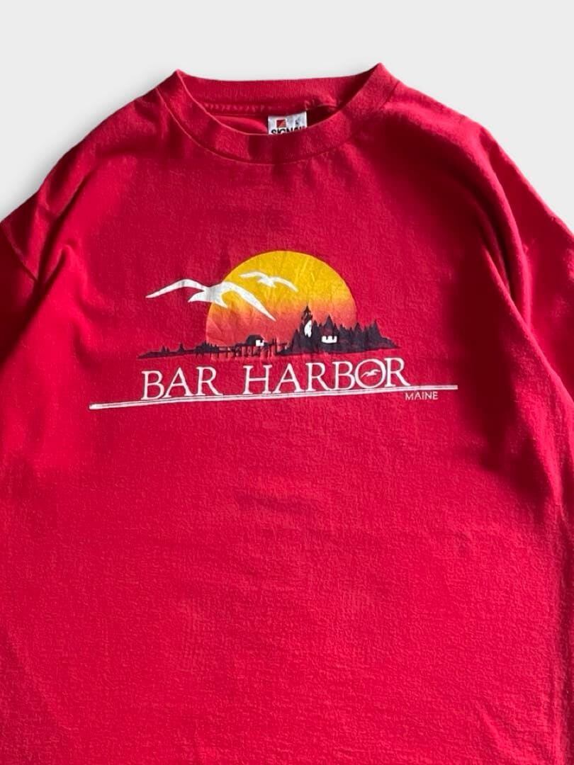 バーハーバー(Bar Harbor)は、アメリカ・メイン州のマウントデザート島にある、アーカディア国立公園の玄関口として知られる港町です。豊かな自然と歴史的な街並みが融合した人気のリゾート地です。こちらのTshirtは90sのスーベニアと思われるSIGNALボディのプリントTです!