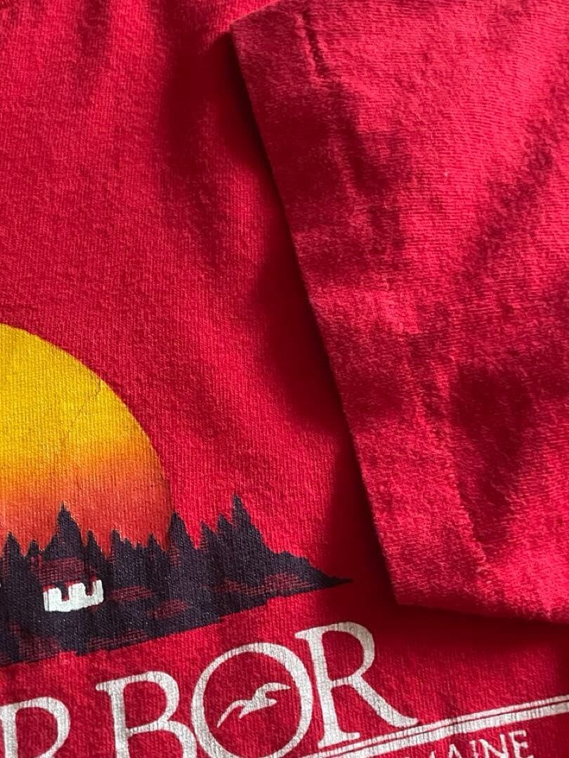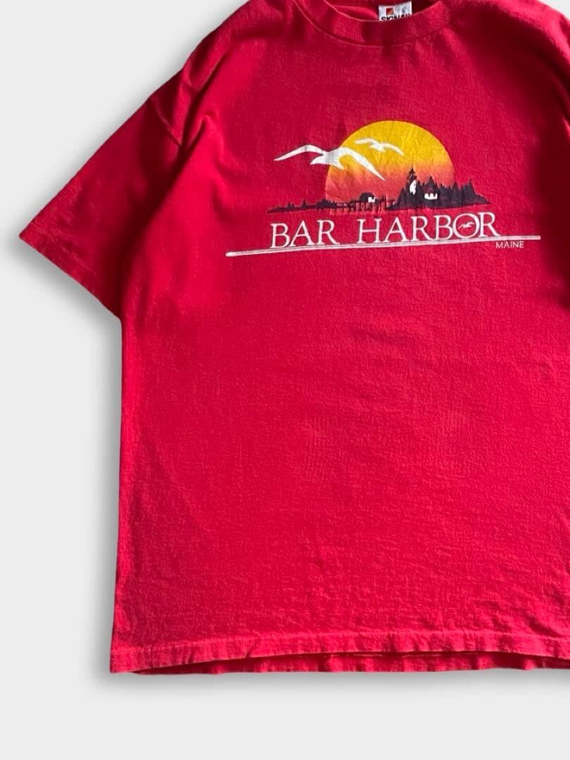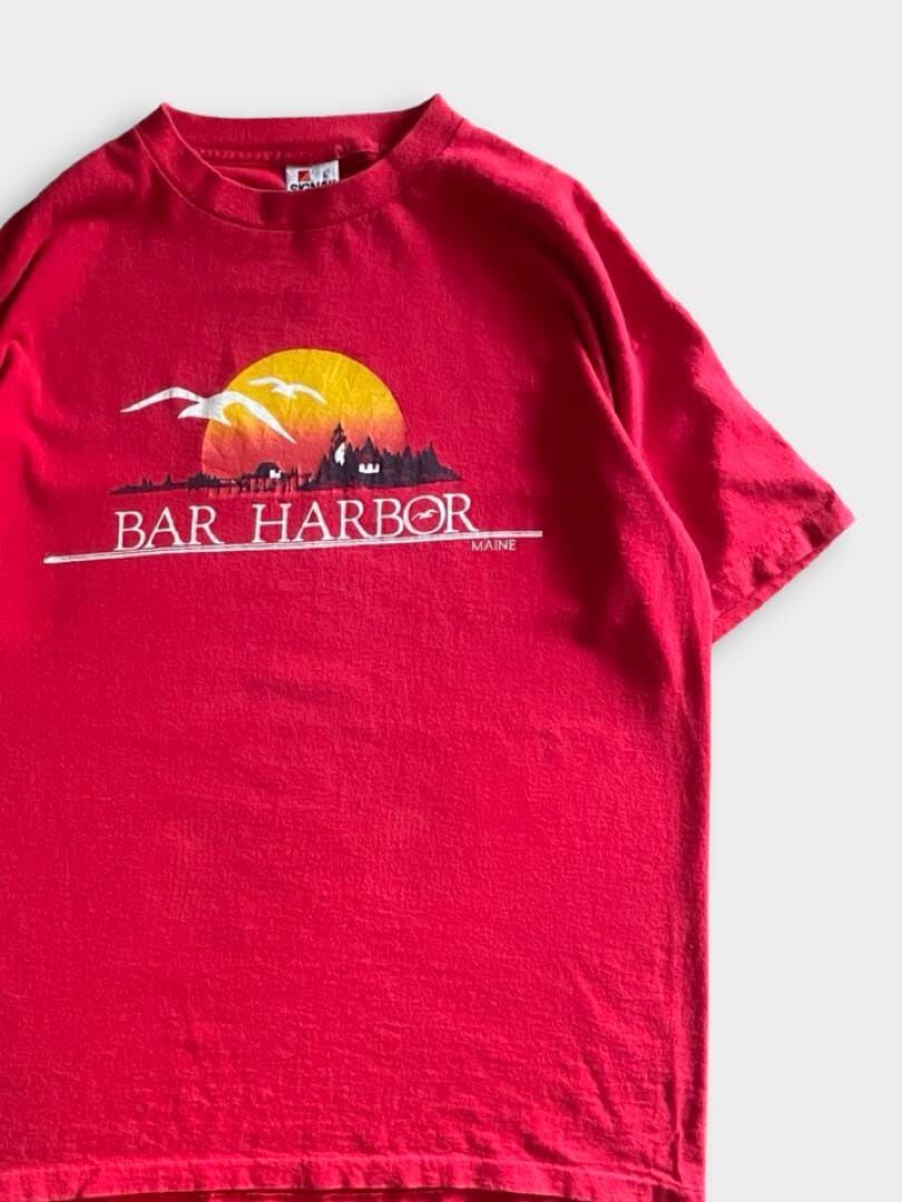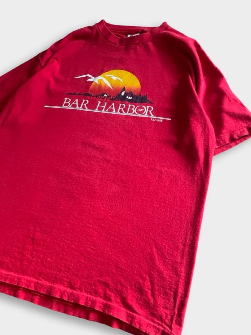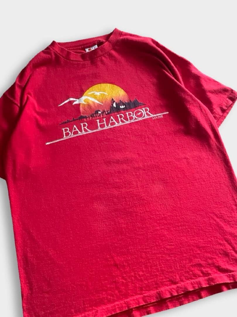バーハーバー(Bar Harbor)は、アメリカ・メイン州のマウントデザート島にある、アーカディア国立公園の玄関口として知られる港町です。豊かな自然と歴史的な街並みが融合した人気のリゾート地です。こちらのTshirtは90sのスーベニアと思われるSIGNALボディのプリントTです!
