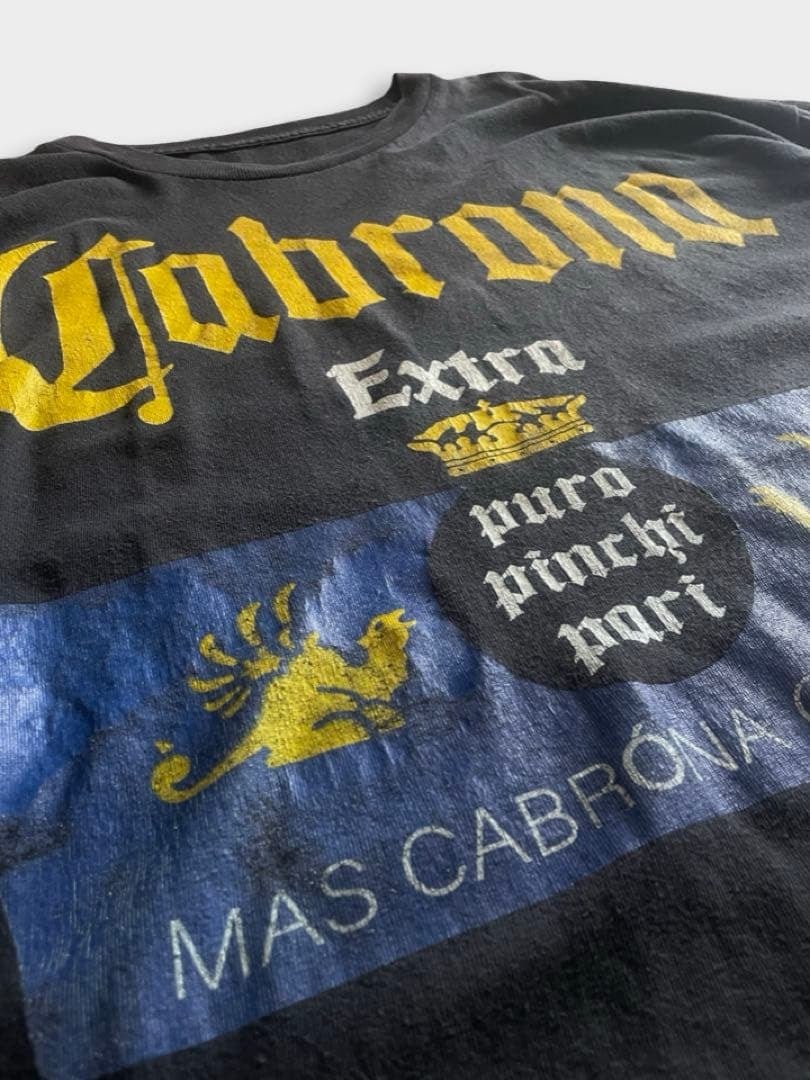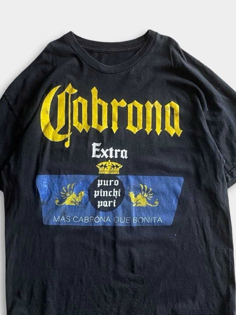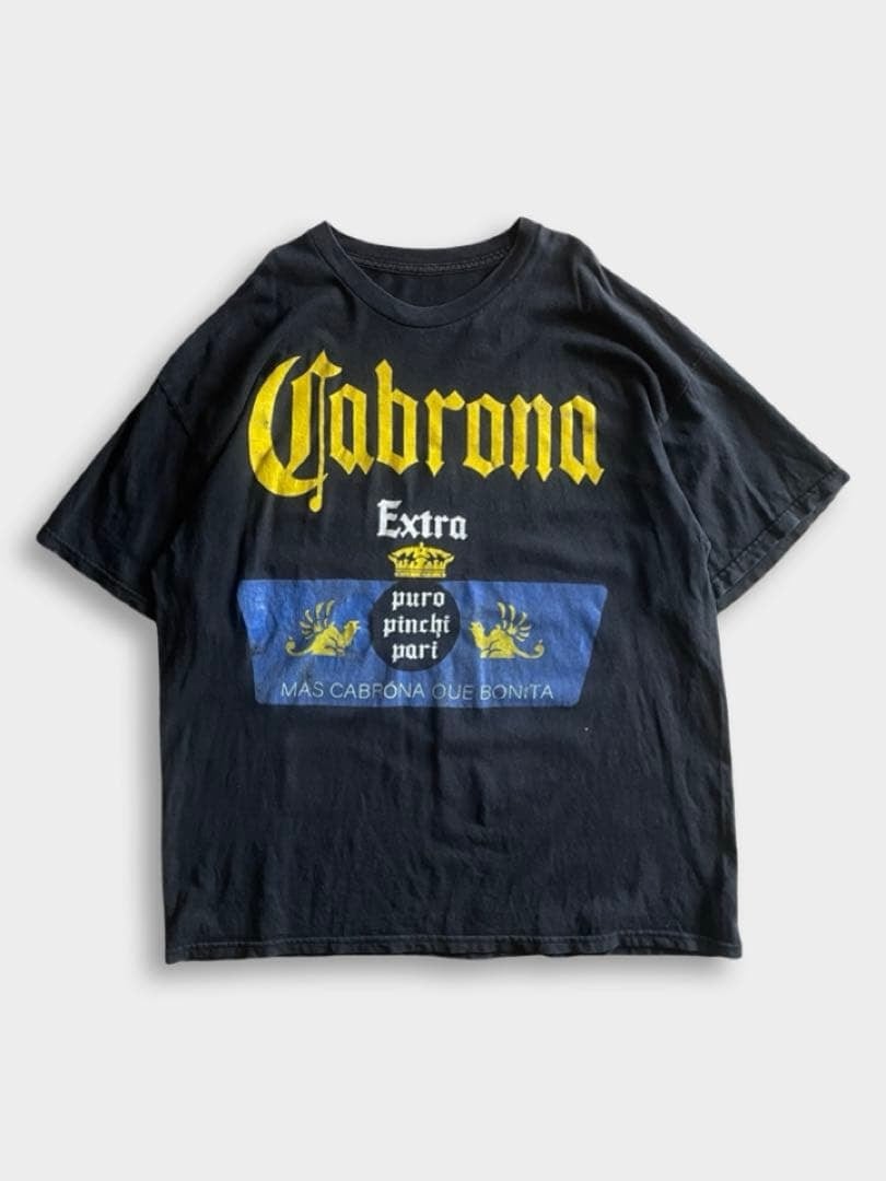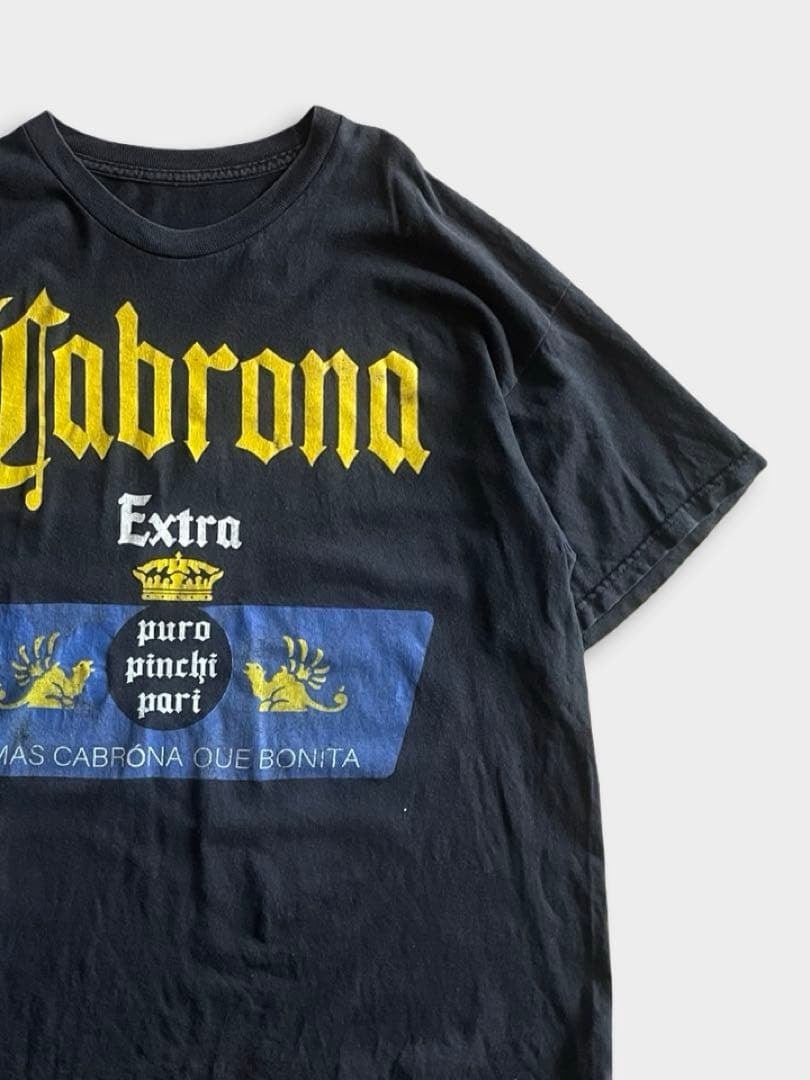 「Cabrona Extra」というロゴが大きく入ったデザインのTシャツです。