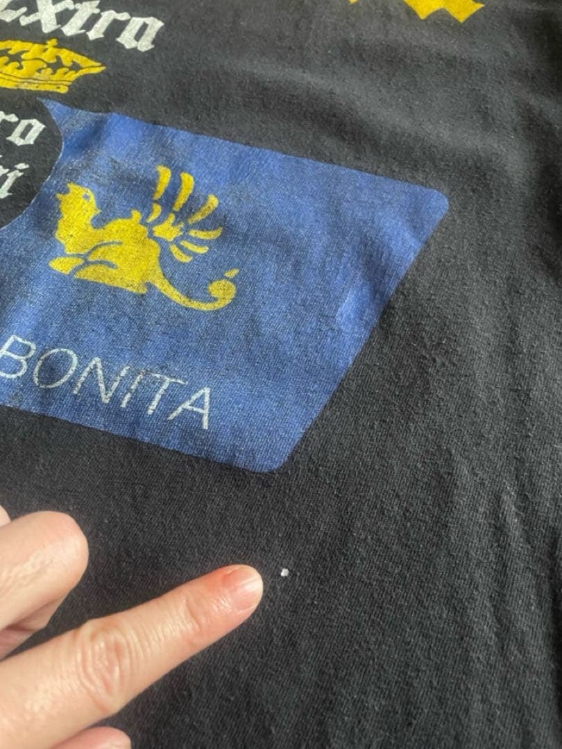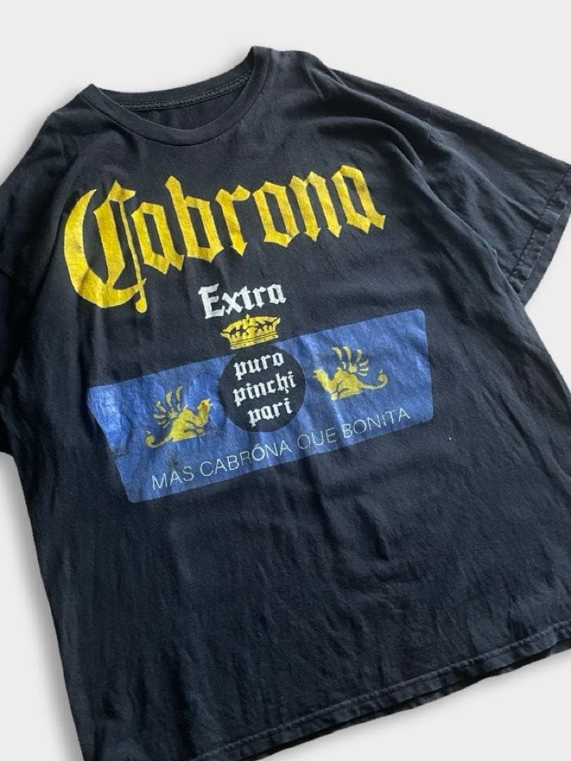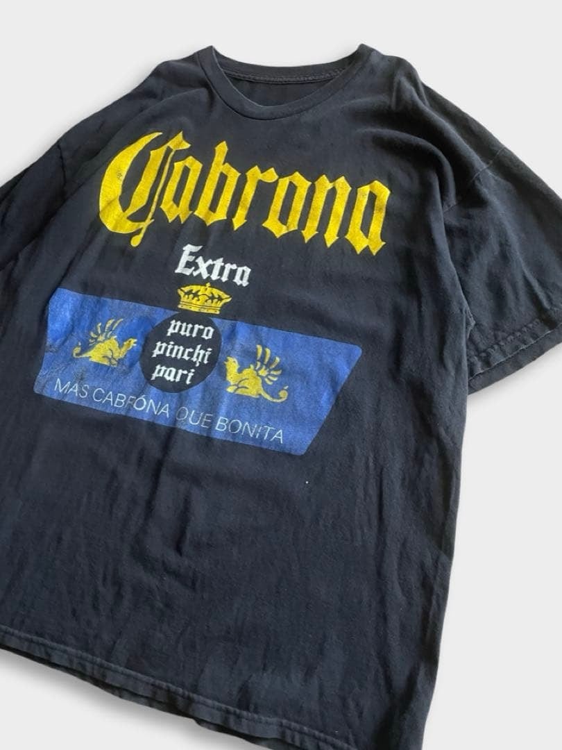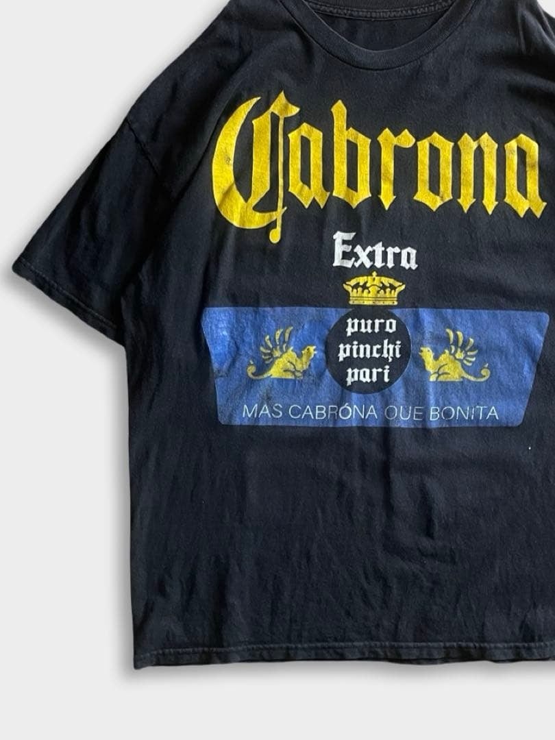 「Cabrona Extra」というロゴが大きく入ったデザインのTシャツです。