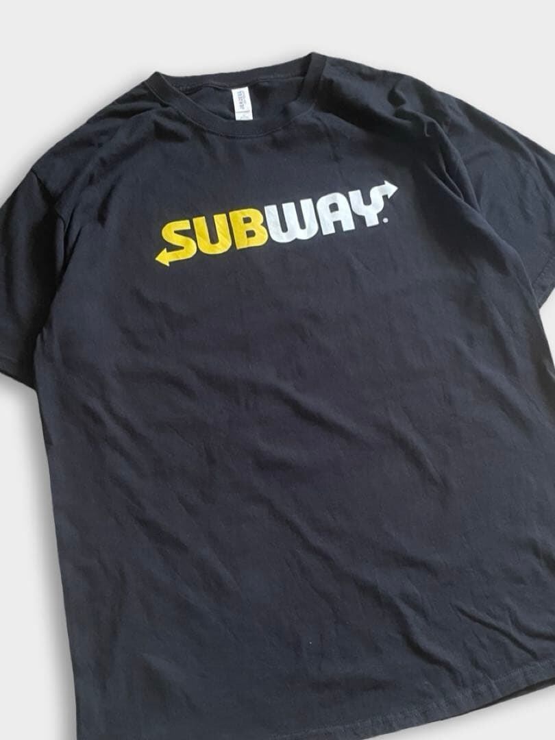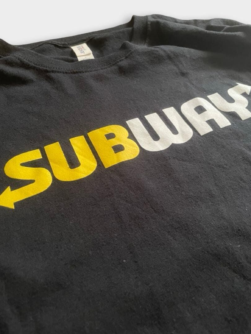 パンが選べたり野菜の量を選べたり、ソースを選べたりするサンドイッチファーストフードチェーンのサブウェイ(SUBWAY)のTshirtです。サブウェイは1965年、アメリカで当時17歳のフレッド・デルーカが学費を稼ぐために創業したサンドイッチチェーンです。日本では1992年に上陸し、新鮮な野菜とオーダーメイドのスタイルで健康志向の支持を集め親会社を変えながら今日に至ります。