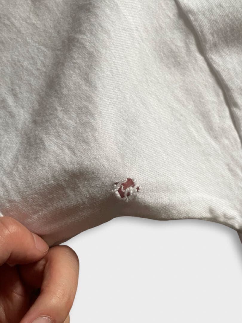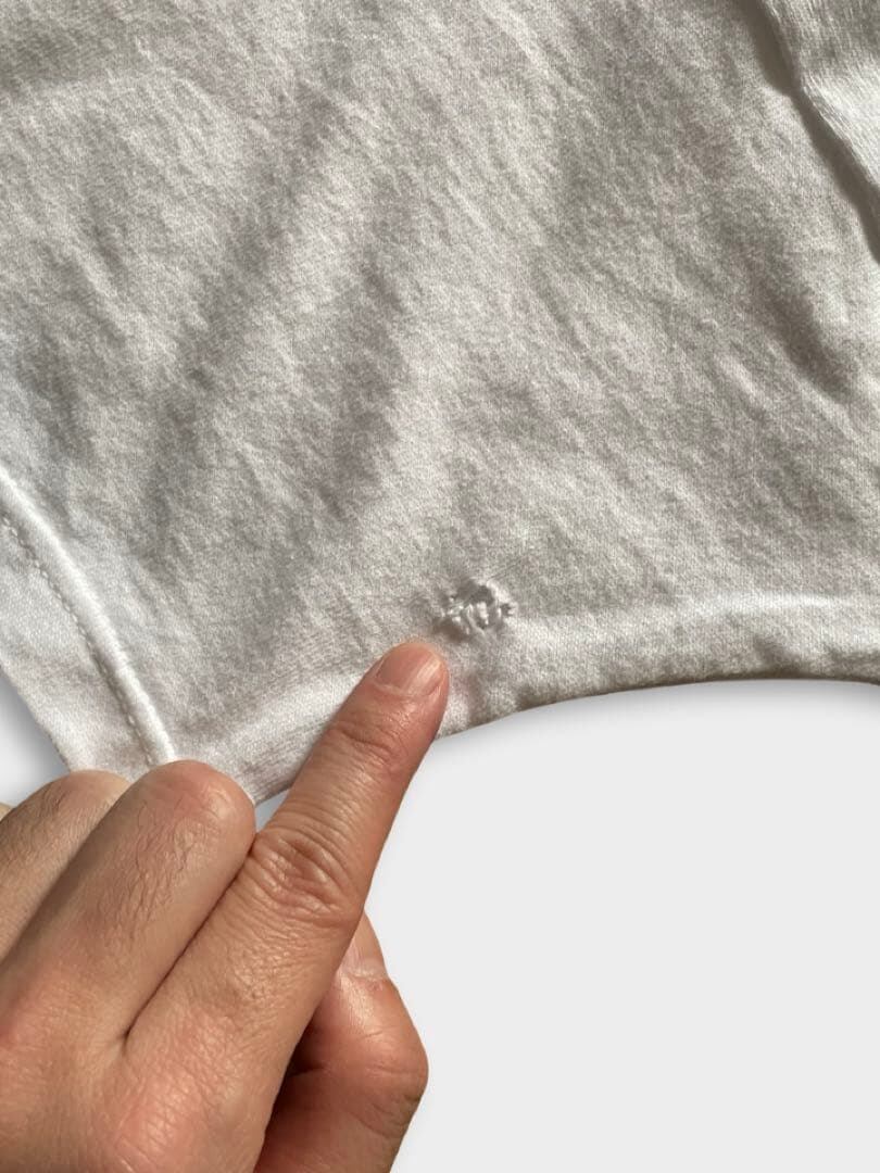 左袖裏面に小さな穴空きがございます。その他、汚れ・破れ・ホツレ・穴あきなど商品不備は見当たりません。