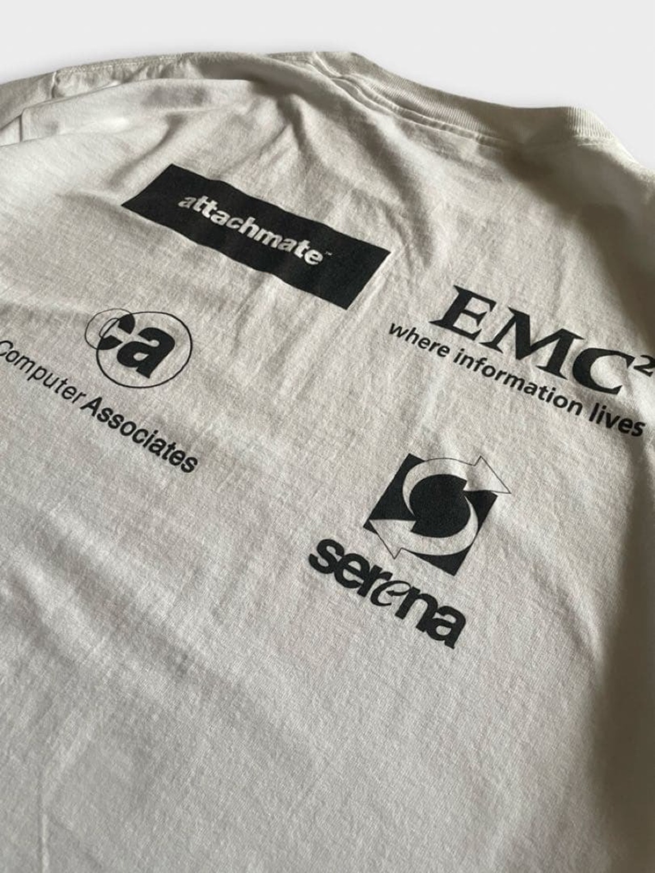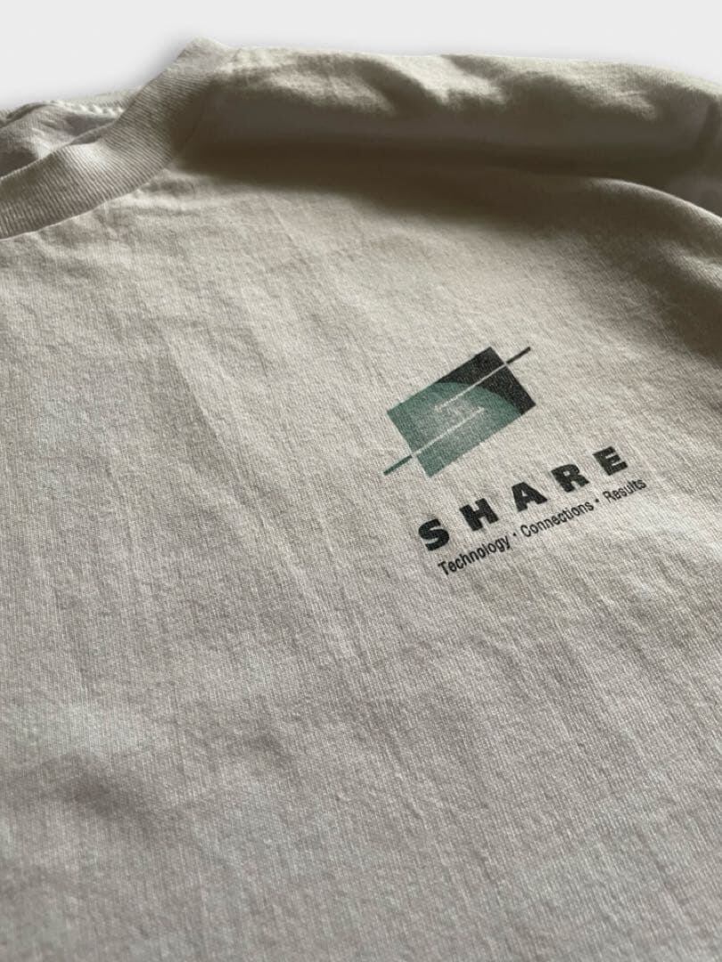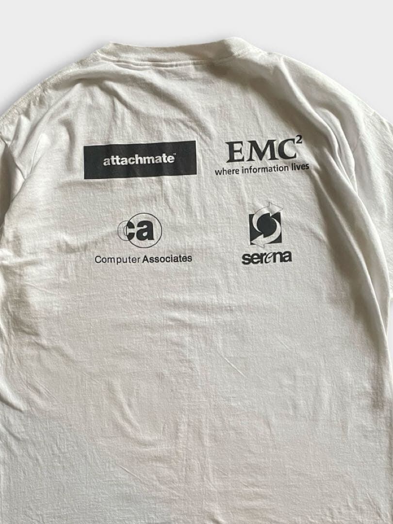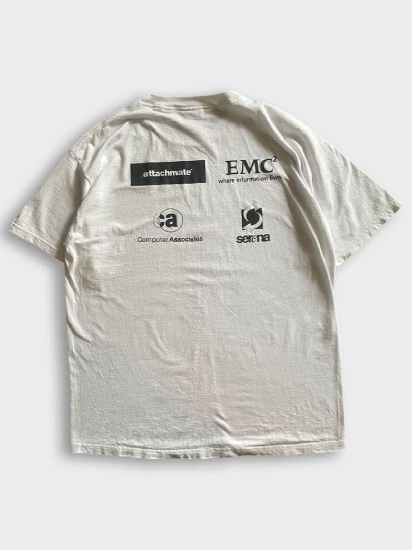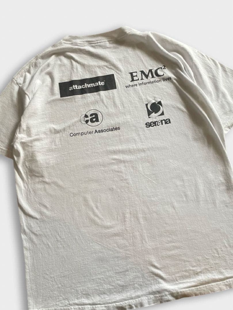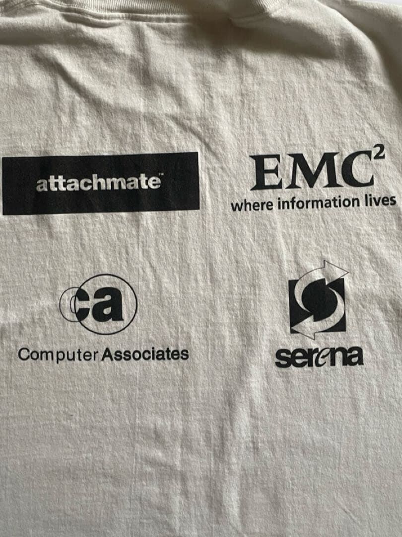 IT系の企業ロゴTシャツと思われますが、詳しくは分かりません。表面・背面ともにテクノロジー系の企業ロゴのような気がします。IT系のプリントTってどんどん高くなってきていますが、わかります。企業系のTシャツってなんかいいですよね。