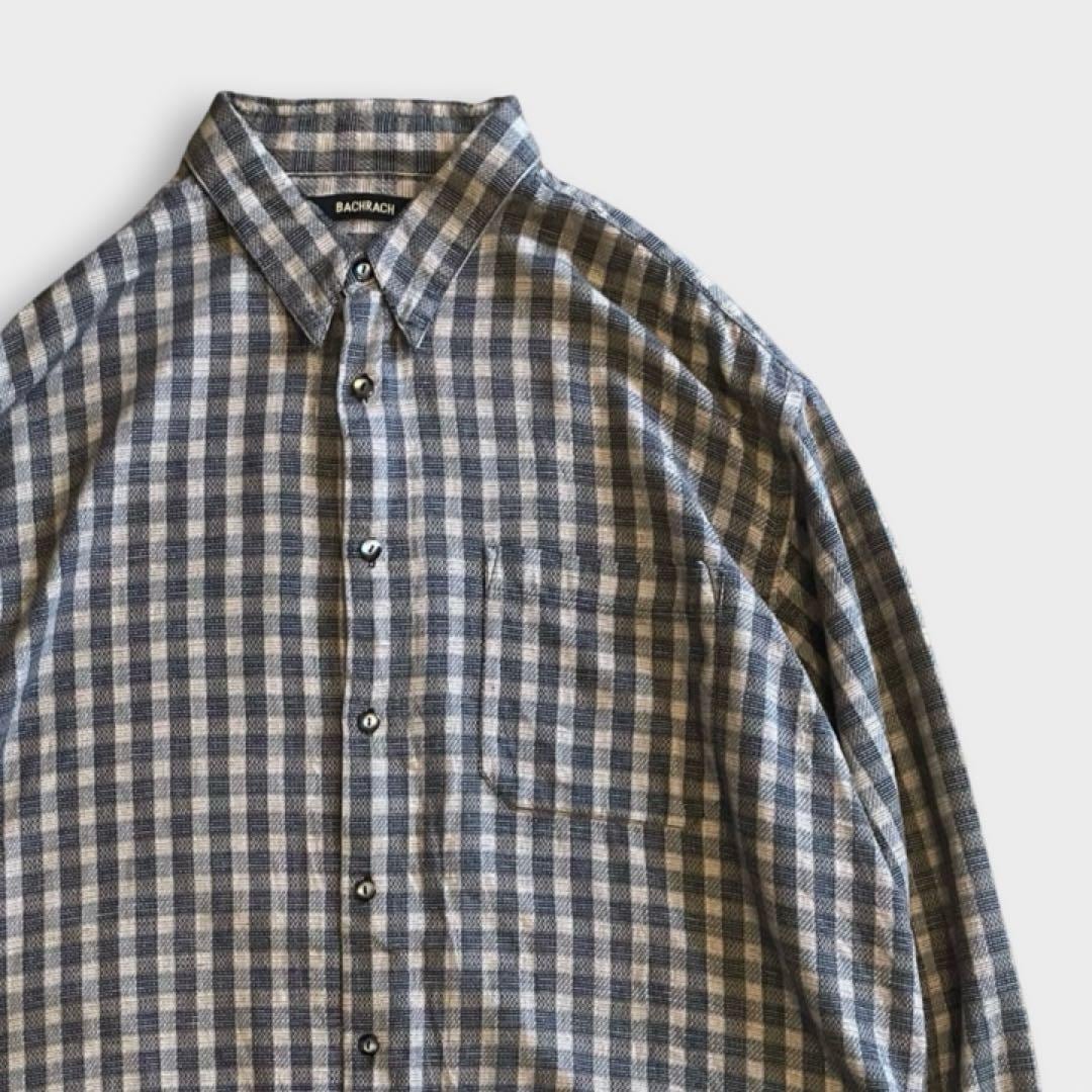 90s BACHRACH チェックシャツ 長袖 グレー系 コットン 希少 USA