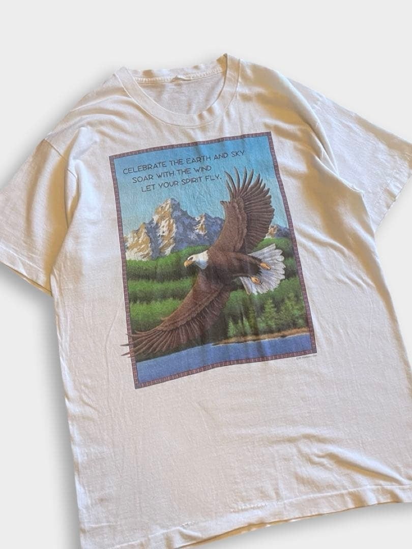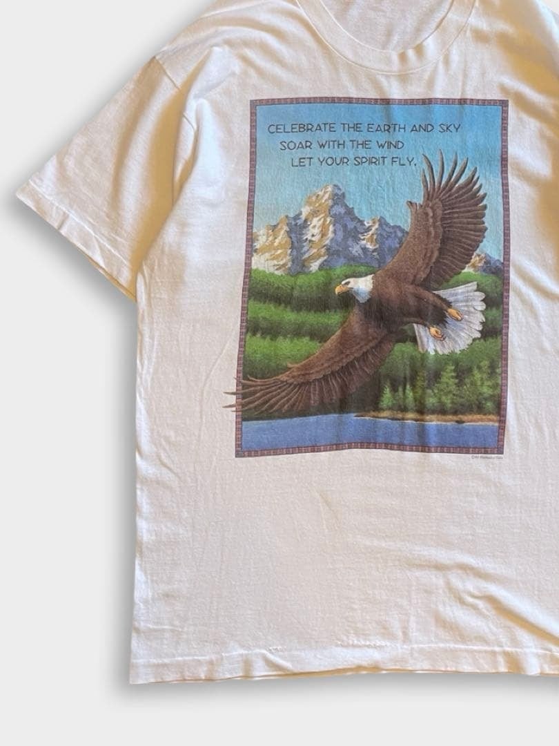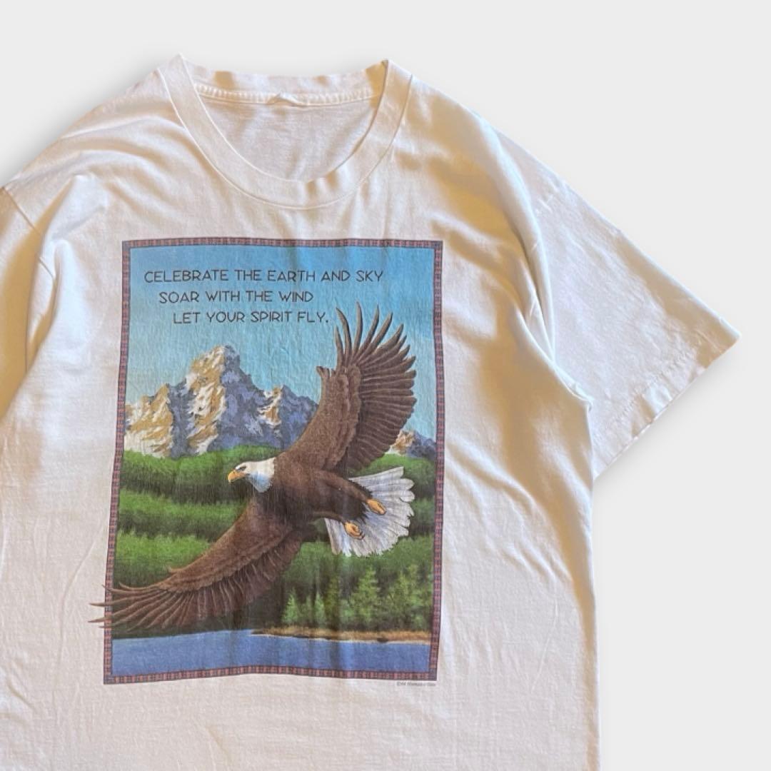 90s イーグル プリント Tシャツ シングルステッチ メッセージ スーベニア