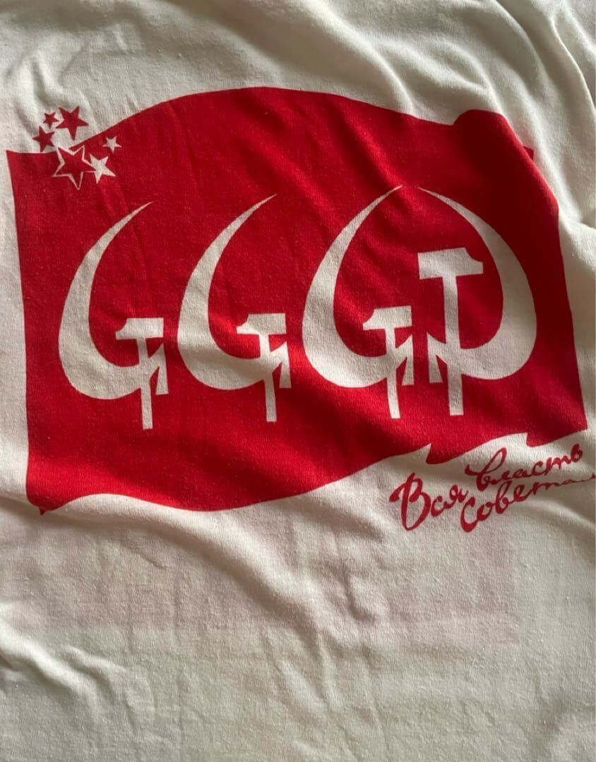 ソ連崩壊と共に共産主義の終わりを皮肉交じりに告げるアメリカ古着らしいメッセージ性の強いプリントになっています。