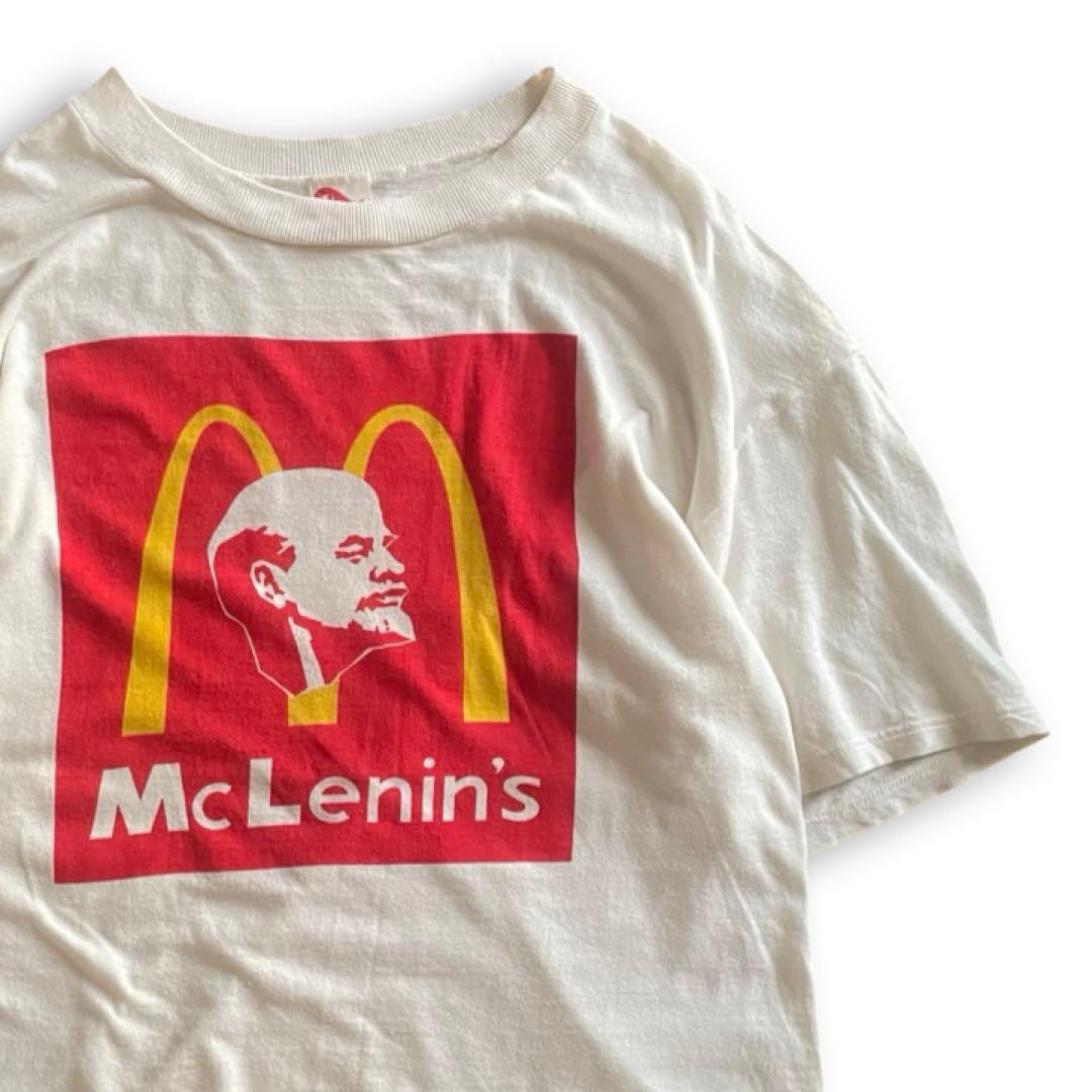 90s McLenin's Tシャツ ホワイト 染み込み マクドナルド パロディ