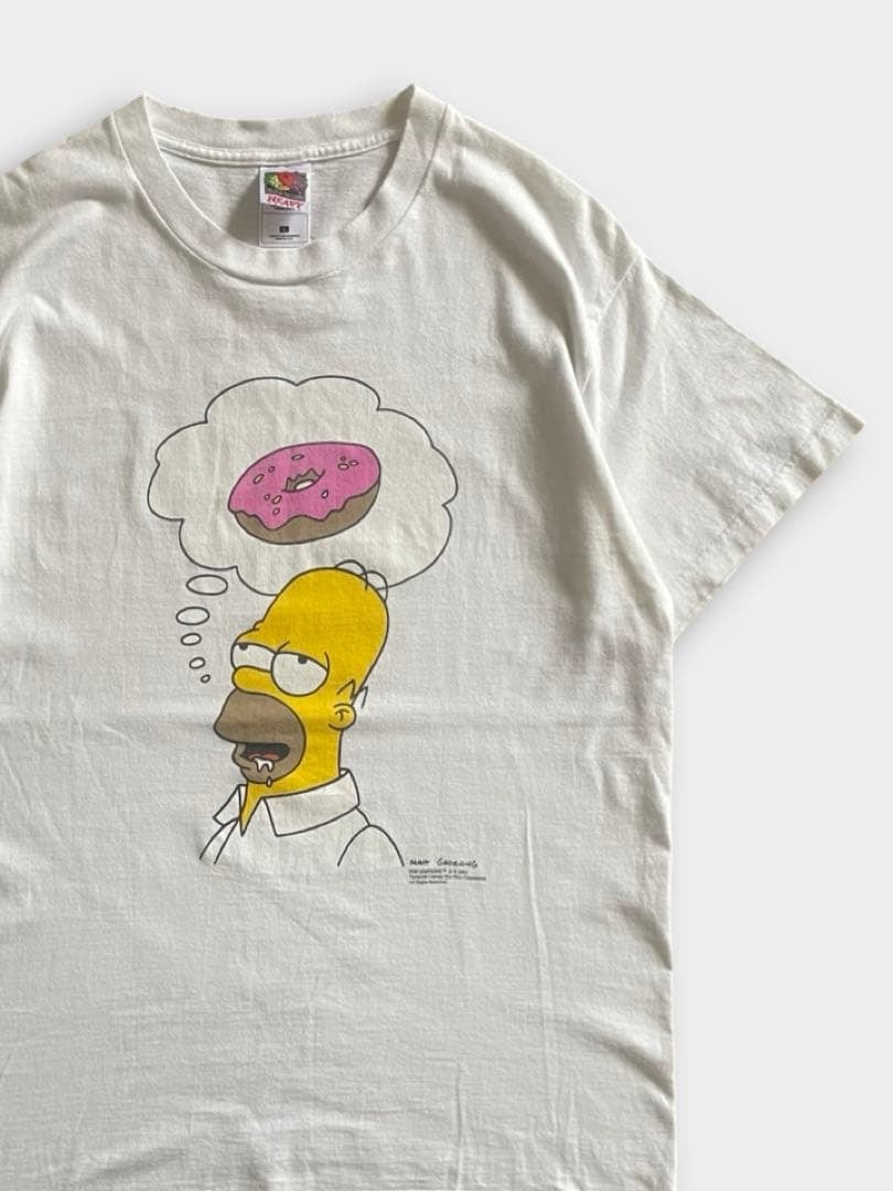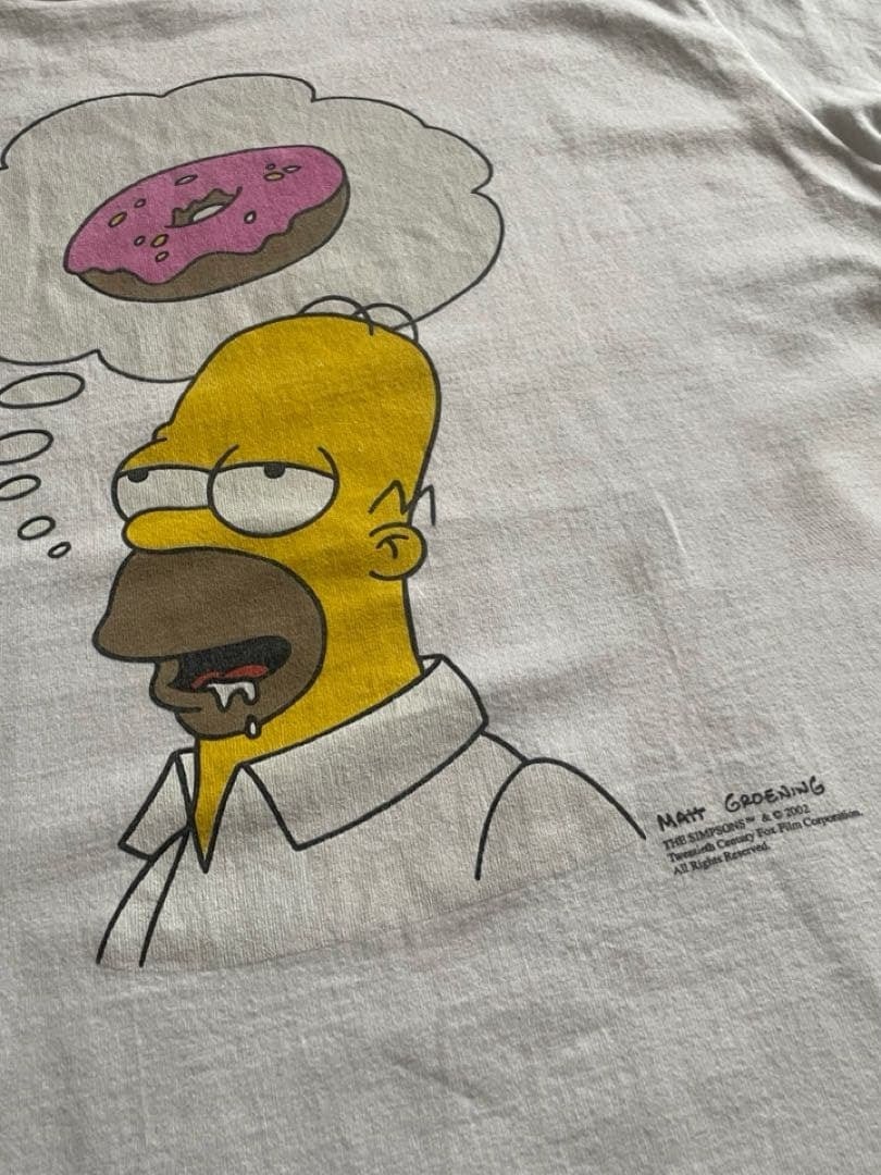 The Simpsons(ザ・シンプソンズ)はフォックス放送で1989年に放送開始した、アメリカ史上最長のテレビアニメ。現在は60か国以上で20か国語に翻訳されているようです。ホーマーシンプソンズがドーナツを思い浮かべボケっとしている可愛いイラストのTシャツです。