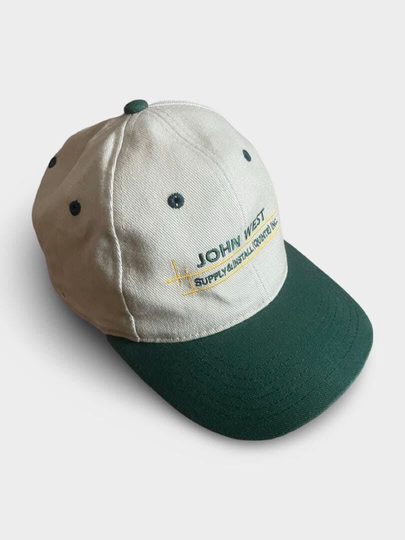 John West 企業系 ロゴ ベースボールキャップ ベージュ グリーン 刺繍