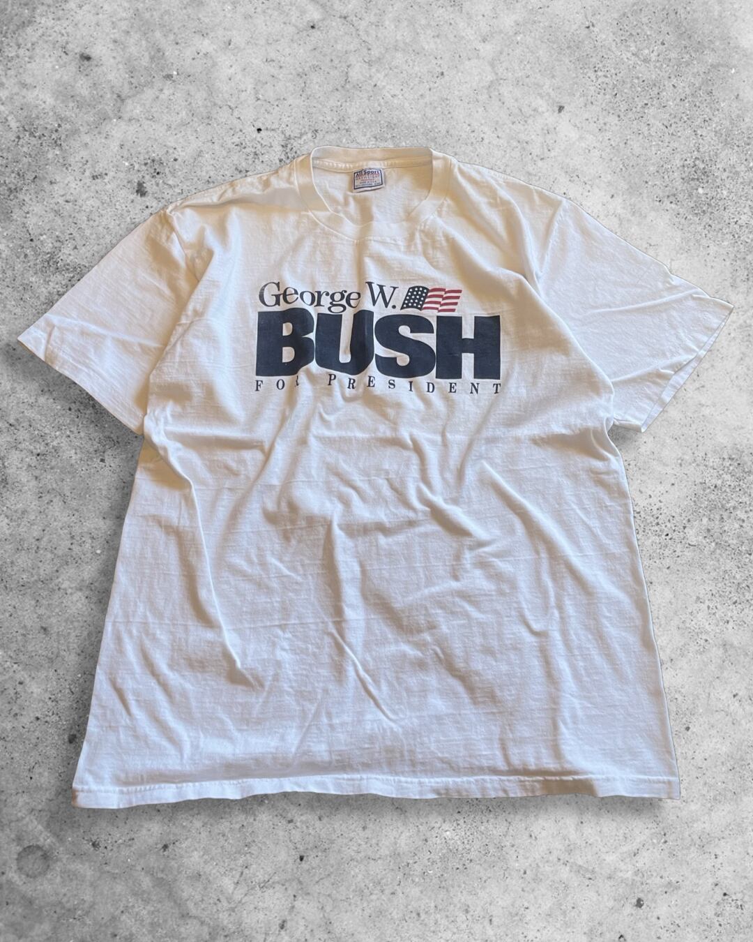 George W. Bushのアメリカ大統領選挙をテーマにしたホワイトボディのTシャツです。